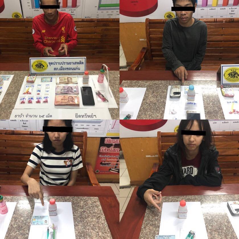 1. นายสนธยาหรือสน ประเที่ยง อายุ 29 ปี ที่อยู่ 419/69 ม.17 ต.ในเมือง อ.เมือง จ.ขอนแก่น พร้อมของกลางยาบ้า 65 เม็ด ไอซ์ 2.32 กรัม ในข้อหา เสพและมียาเสพติดให้โทษประเภท 1 ( ยาบ้า ไอซ์ )ไว้ในความครอบครองเพื่อจำหน่าย ยึด พรบ.มาตราการ 8,900 บาท