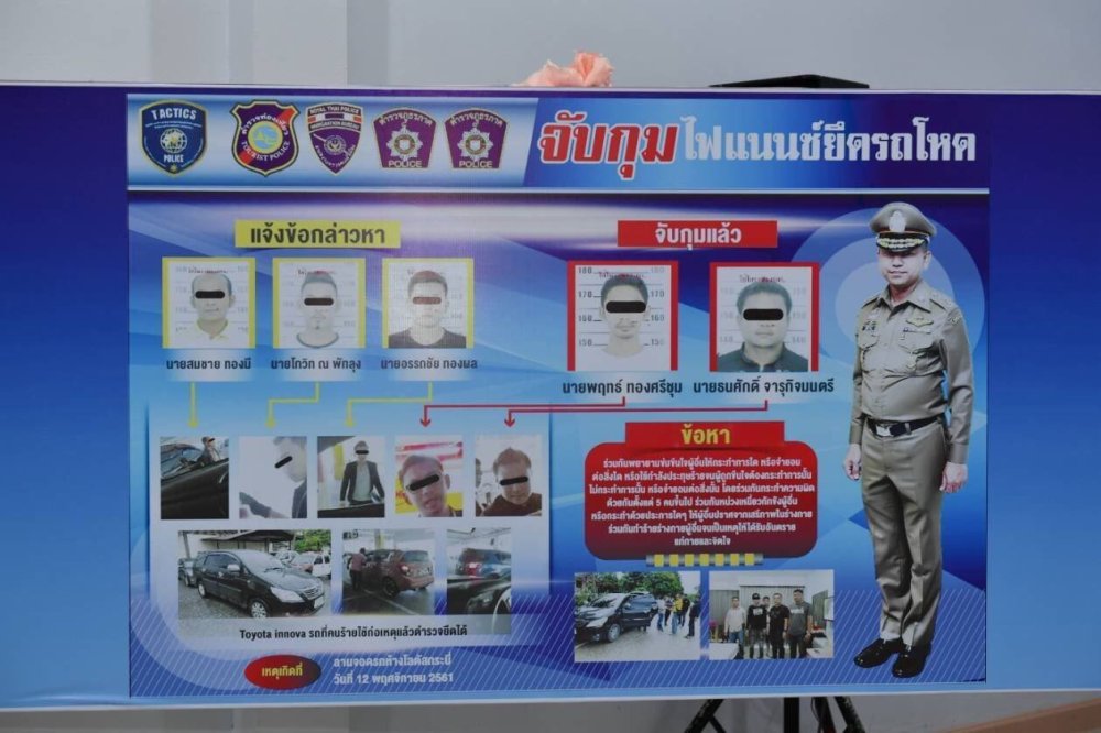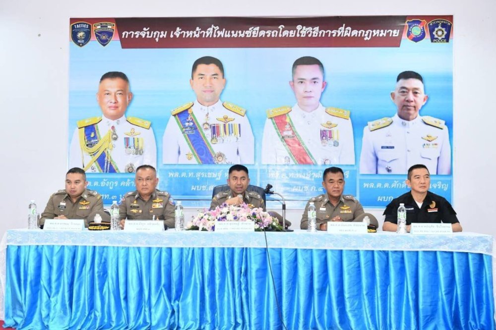 ศปอส.ตร.แถลงผลจับกุมคนร้าย อ้างเป็นเจ้าหน้าที่บริษัทไฟแนนซ์ยึดรถโดยใช้วิธีการที่ผิดกฎหมาย