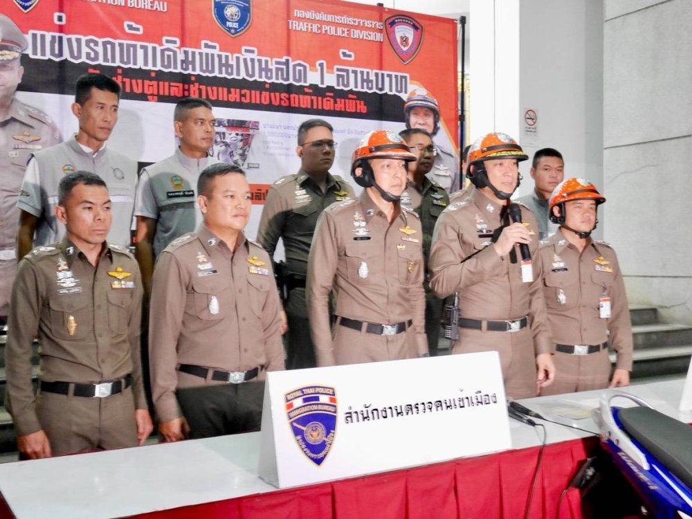 สำนักงานตรวจคนเข้าเมือง ศูนย์ปราบปรามอาชญากรรมทางเทค โนโลยีสารสนเทศ (TACTICS) ร่วมกับกองบังคับการตำรวจจราจร ร่วมกันแถลงผลการปฏิบัติจับกุมผู้ต้องหาแอดมินโพส จัดแข่งรถในทางสาธารณะ และวางเงินเดิมพันจำนวน 1 ล้านบาท