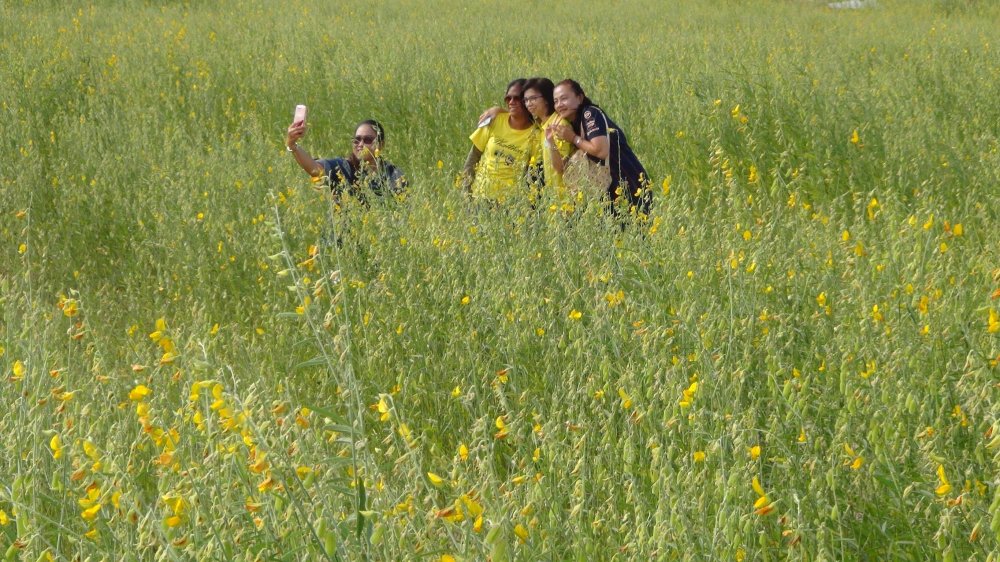 นทท.แห่เซลฟี่-ชมความสวยงามทุ่งปอเทืองบานสะพรั่งเหลืองอร่ามริมอ่างเก็บน้ำจรเข้มากคึกคัก