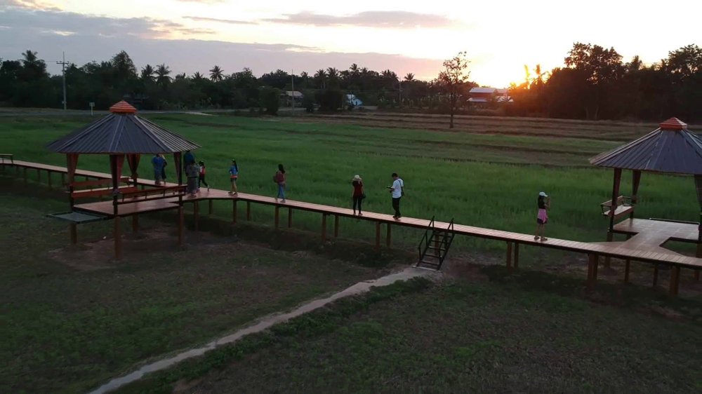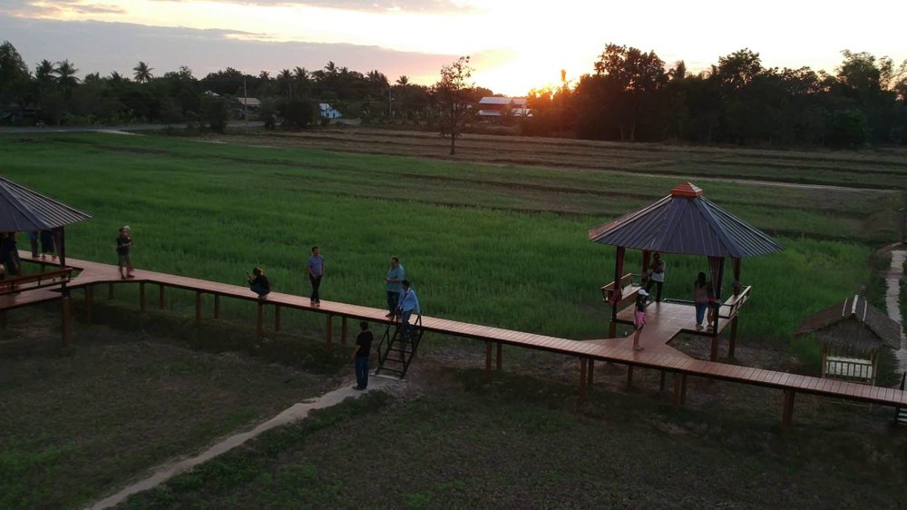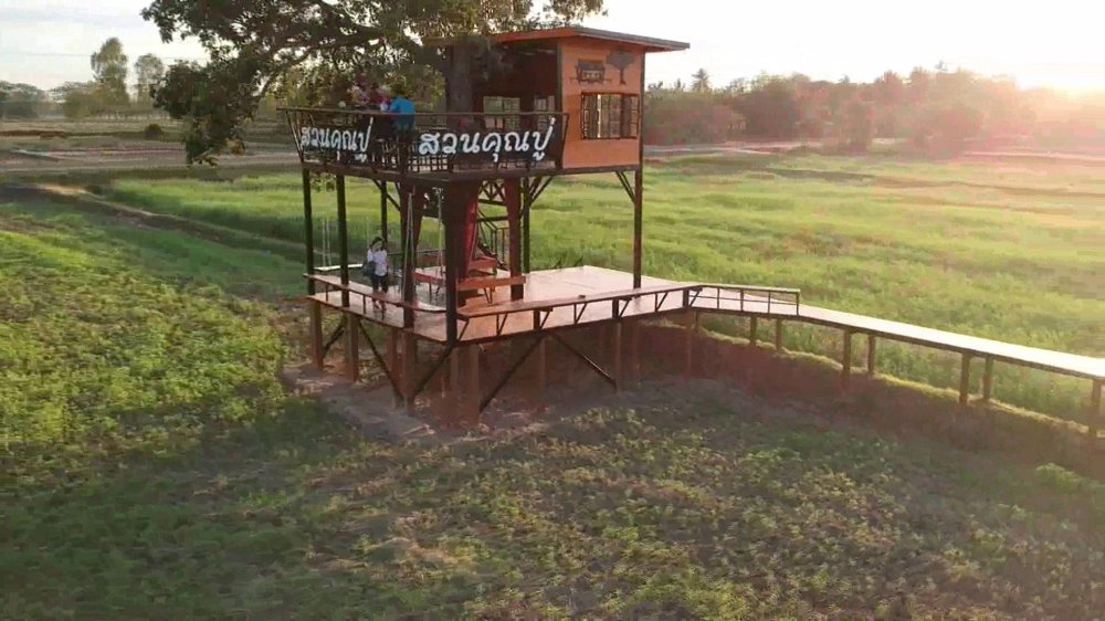 นักท่องเที่ยว แห่พาครอบครัว ไปชมความสวยงามพระอาทิตย์ตก ยามเย็นบนบ้านต้นไม้ สูดกลิ่นอายธรรมชาติ และสัมผัสลมหนาวในสวนคุณปู่ ที่เจ้าของเนรมิตผืนนา 24 ไร่ ให้กลายเป็นสถานที่ท่องเที่ยวชุมชนแห่งใหม่เปิดให้นักท่องเที่ยวเข้าชมฟรี