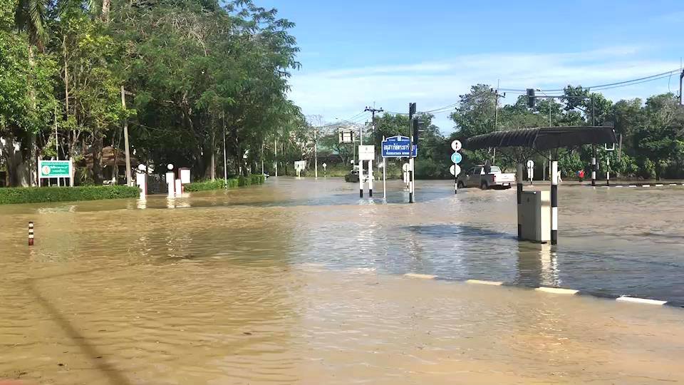 โดยเช้าวันนี้ที่บริเวณอนุสาวรีย์พระยารัษฎานุประดิษฐ์ ในเขตเทศบาลนครตรัง ระดับน้ำยังคงเพิ่มสูงขึ้นอย่างต่อเนื่อง สูง 30-60เซ็นติเมตร รถเล็กไม่สามารถผ่านได้