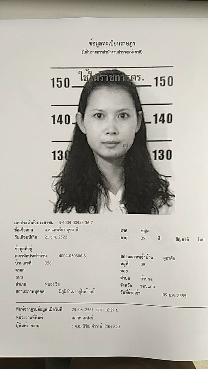 พ.ต.อ.พ.ต.อ.ธนะวัฒน์ ภัคะธนิตศักดิ์ รอง.ผบก.จังหวัดชัยภูมิ ได้เปิดเผยกับผู้สื่อข่าวว่ากรณีเมื่อวันที่ 24 ธ.ค. ร.ตอ.นิวัฒน์ คำวงษ์ รอง สว.สอบสวน สภ.หนองสังข์ อ.แก้งคร้อ จ.ชัยภูมิ ได้รับแจ้งจากชาวบ้านว่าพบรถเก๋งยี่ห้อ Nissan รุ่น Tiida สีขาวหมายเลขทะเบียน ฌภ-6711 กทม. จอดอยู่กลางไร่อ้อย ในลักษณะดับเครื่องยนต์ ประตูรถทุกบานถูกล๊อคปิดสนิท ตรวจสอบภายในตัวรถพบร่างหญิงสาว อายุประมาณ 35 ปี ลักษณะนอน นอนงอขาห่มผ้าห่ม เอาศีรษะพาดเบาะไปทางด้านผู้โดยสาร หลังจาก จนท.มูลนิธิฯได้ใช้เหล็กงัดประตูรถฯนำร่างหญิงสาวออกจากรถ ทราบชื่อผู้เสียชีวิตชื่อนางสาวแคทรียา มุขมาลี อายุ35ปี อยู่บ้านเลขที356 ม.9 ต.บ้านกง อ.หนองเรือ จ.ขอนแก่น เป็นข้าราชการครูโรงเรียนแห่งหนึ่งในอำเภอหนองเรือ จ.ขอนแก่น สภาพศพ ผู้เสียชีวิต สวมเสื้อยืดแขนสั้นสีแดง ใส่กางเกงยีนส์ขายาว จากการตรวจสอบร่างกายเบื้องต้นไม่พบร่องรอยการถูกทำร้ายร่างกายแต่อย่างใด คาดว่าเสียชีวิตมาไม่ต่ำกว่า6-7ชั่วโมง