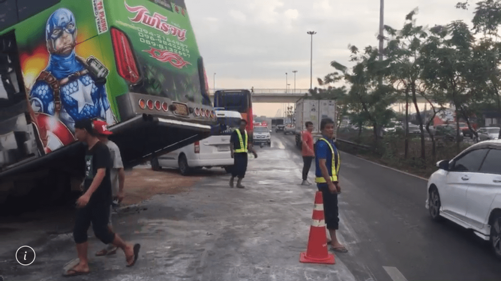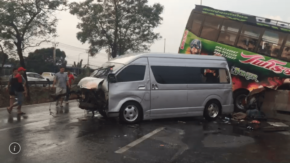 7อันตราย ตาย 1 ศพ ย่านพระราม2 รถตู้กับรถบัสรีบทำรอบ พลาดท่าตกข้างทางทั้งคู่ เจ็บ3 ดับ 1 พระราม2 ขาเข้า