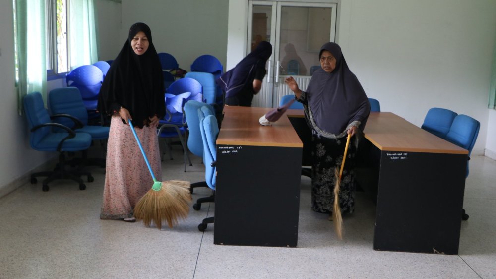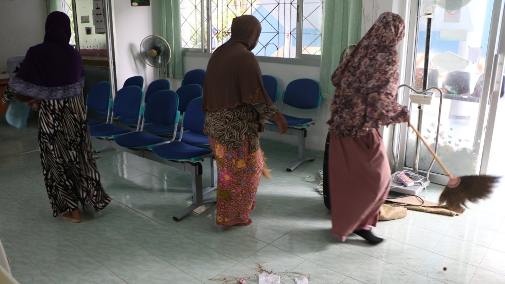 ชาวบ้าน อสม.และเจ้าหน้าที่โรงพยาบาลส่งเสริมสุขภาพตำบลกาลีซา ม.5 ต.กาลีซา อ.ระแงะ จ.นราธิวาส และเจ้าหน้าที่ชุด ชคต.ตำบลกาลีซา นำอุปกรณ์ มาทำความสะอาดทั้งในและนอกโรงพยาบาลส่งเสริมสุขภาพตำบล กาลีซา พร้อมเก็บกวาดเศษกระจก และเก็บจัดโต๊ะเก้าอี้ ให้คืนสู่สภาพเดิม เพื่อเตรียมเปิดให้บริการประชาชนในวันนี้
