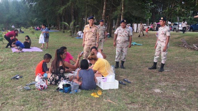 เจ้าหน้าที่เร่งตรวจตราความปลอดภัยให้ประชาชนและนักท่องเที่ยว ที่พาครอบครัวพักผ่อนบริเวณชายหาด