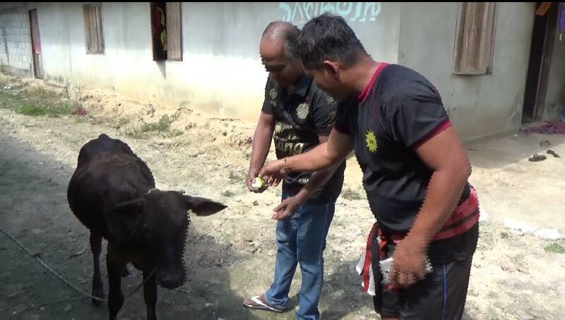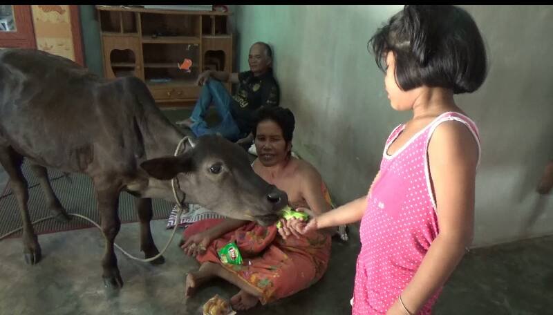 ลูกวัวเพศผู้วัย 8 เดือนกินนอนในบ้านกับเจ้าของมา 3 เดือน สุดเชื่องชอบกินอาหารคนมากกว่าหญ้า ออกไปรับพรกับพระทุกเช้า เจ้าของรักมากใครขอซื้อเท่าไหร่ก็ไม่ยอมขาย
