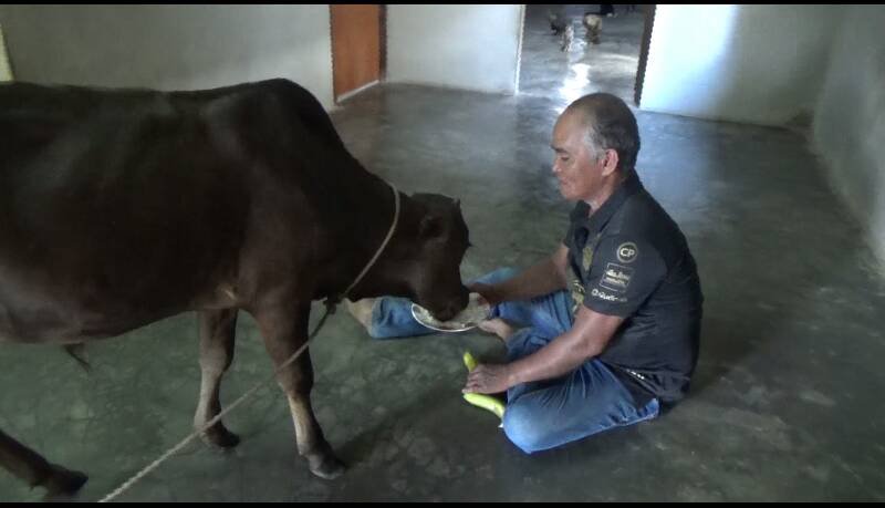 แปลกแต่จริง วัวเชื่องทานอาหารเหมือนคน