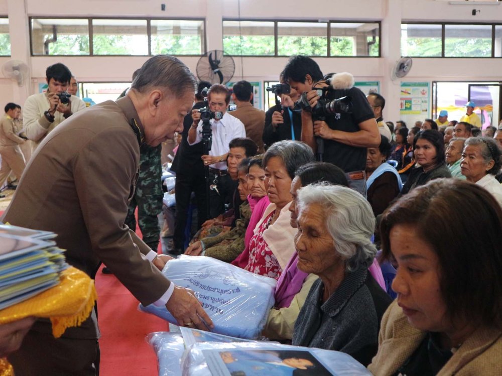 โดยผู้ว่าราชการจังหวัดมุกดาหาร เชิญพระกระแสรับสั่งของสมเด็จพระเจ้าอยู่หัว ในการเชิญสิ่งของพระราชทาน เพื่อเป็นขวัญและกำลังใจแก่ประชาชน เพื่อมอบผ้าห่มกันหนาวและสิ่งของพระราชทานให้แก่ประชาชนที่ประสบความเดือดร้อนจากภัยหนาว พร้อมทั้งลงพื้นที่มอบสิ่งของพระราชทานให้แก่ผู้ป่วยติดเตียง และผู้ทุพพลภาพ จำนวน 2 คน คือ นายดี ขันแข็ง อายุ 67 ปี บ้านเลขที่ 104 หมู่ 2 ตำบลคำอาฮวน อำเภอเมือง จังหวัดมุกดาหาร ซึ่งป่วยเป็นโรคเส้นโลหิตในสมองแตก ตั้งแต่ 2551 ไม่สามารถช่วยเหลือตัวเองได้ และนางเครือ ไชยพันธ์ อายุ 95 ปี บ้านเลขที่ 45 หมู่ 16 ตำบลคำอาฮวน อำเภอเมือง จังหวัดมุกดาหาร ซึ่งตาบอดทั้งสองข้าง อาศัยอยู่กับหลานที่ป่วยเป็นจิตเวช เพื่อเป็นขวัญกำลังใจแก่ประชาชนด้วย