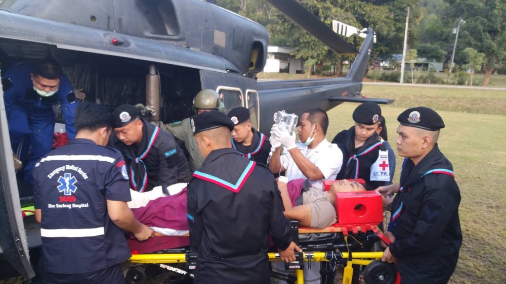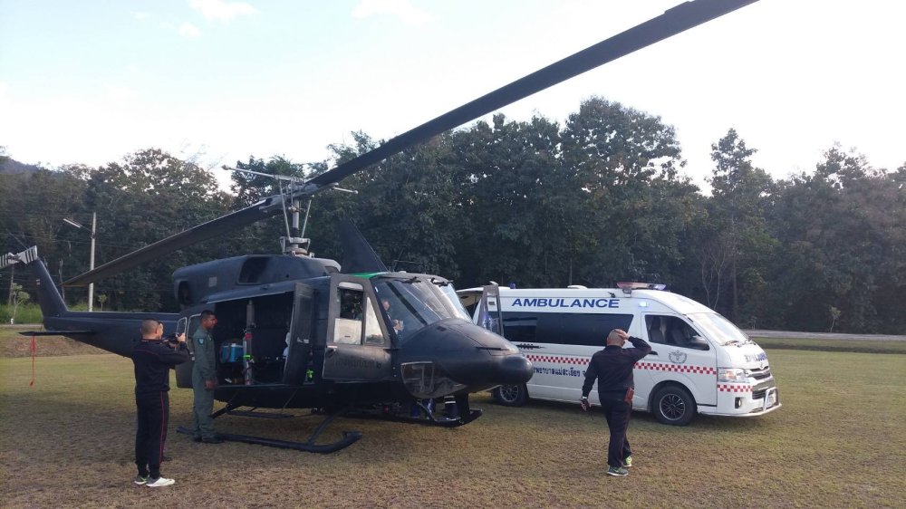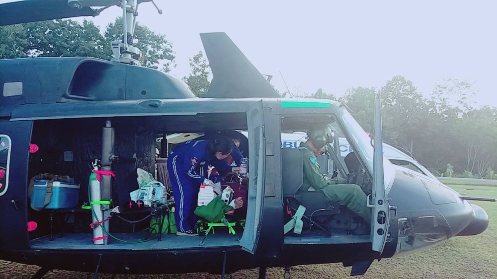 หลังจากได้รับการประสานทีม Sky Doctor ขึ้นอากาศยานที่หน่วยเฉพาะกิจกรมทหารราบที่ 7 อากาศยานได้ยกตัวเวลา 14.30 น.ใช้เวลาเดินทาง ถึงอำเภอแม่สะเรียงเวลา 15 20 น. ทีมแพทย์จากโรงพยาบาลแม่สะเรียงและชุดบรรเทาสาธารณภัย ของหน่วยเฉพาะกิจกรมทหารพรานที่ 36 ช่วยลำเลียงผู้ป่วยนำส่งขึ้นอากาศยาน การลำเลียงผู้ป่วย ของทุกภาคส่วนดำเนินการลำเลียงเป็นไปตามระบบ และอากาศสถานะยกตัวไปที่ปลายทางไปยังสนาม Helicopter โรงพยาบาลมหาราชนครเชียงใหม่ ถึงประมาณท 16.30 น.คณะแพทย์ พร้อมอุปกรณ์ทางการแพทย์ รวมทั้งรถพยาบาลฉุกเฉิน มารอรับผู้ป่วย เพื่อไปทำการรักษาต่อไป