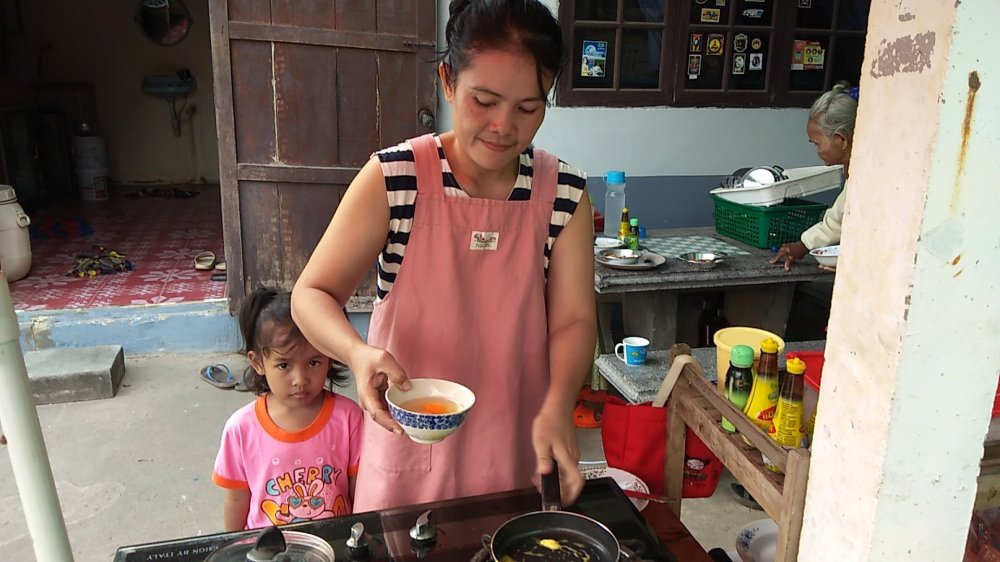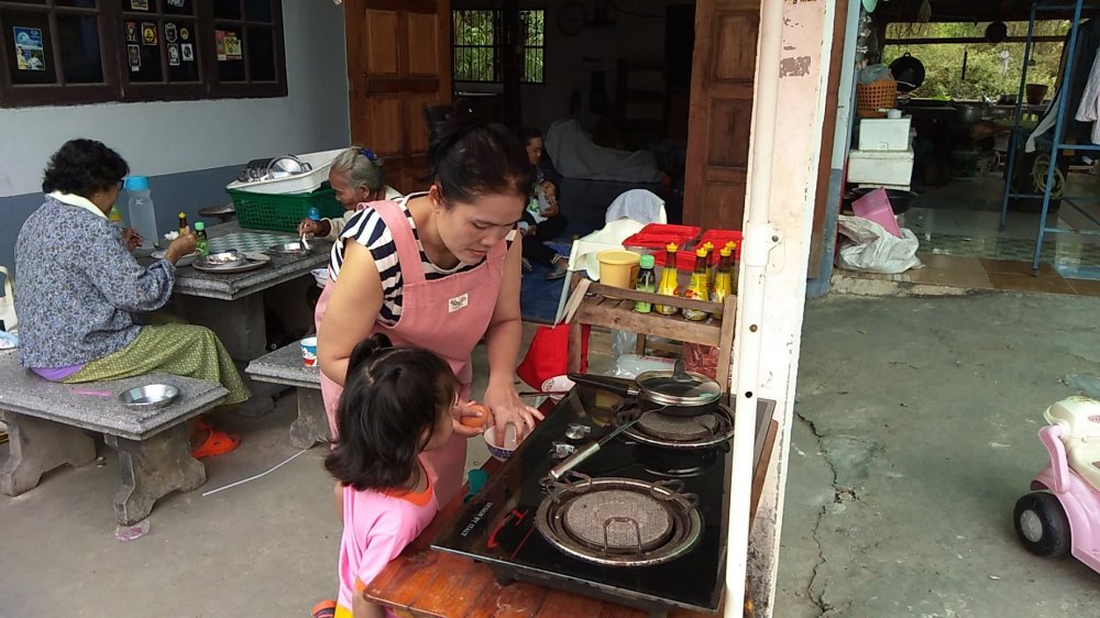 โดย-นางธนัชภรณ์ ฤทธิ์จรูญ อายุ 40 ปี บอกว่า ตเคยเป็นผู้ช่วยเชฟในโรงแรมดังแห่งหนึ่งใน จ.สกลนคร มาหลายปี แต่ปีนี้ได้ตัดสินใจลาออกมาอยู่ที่บ้านตนเองเพื่ออยู่พร้อมหน้ากันกับครอบครัวเสียที และได้นำเอาเมนูที่ตนเองถนัดมาทำเป็นอาชีพเพื่อสร้างรายได้เลี้ยงครอบครัว