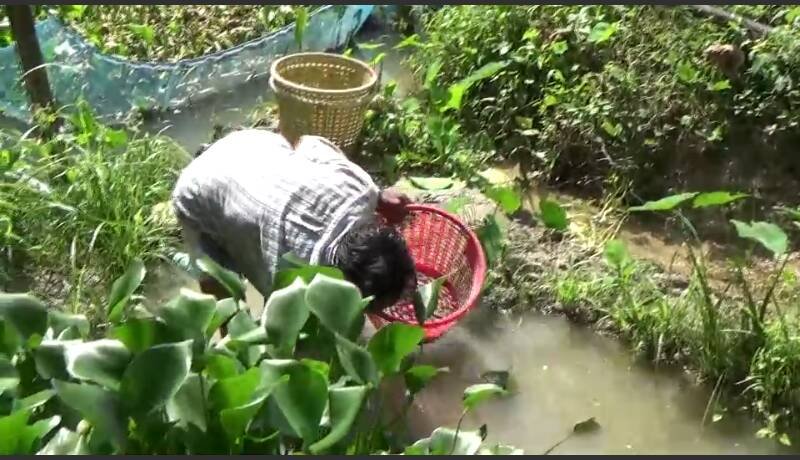 เกษตรกรชาวสวนยางพารา ตำบลปากแจ่ม อ.ห้วยยอด จ.ตรัง เลี้ยงหมู เลี้ยงปลาและหอยขมควบคู่กันไป ได้ 3 ต่อ โดยเฉพาะหอยขมตัวใหญ่ ๆ มีไม่พอขาย