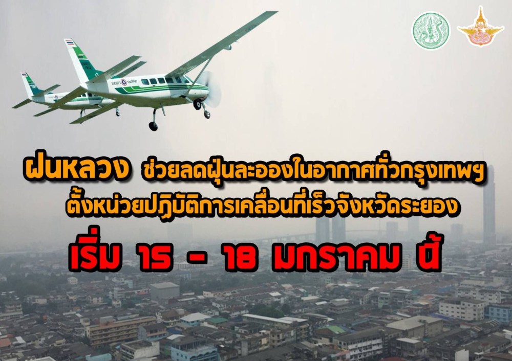 “ชาวกรุงมีเฮ !!กรมฝนหลวงฯ ตั้งหน่วยปฏิบัติการเคลื่อนที่เร็วเตรียมพร้อมทำฝนช่วยลดฝุ่นละอองในอากาศ เริ่ม 15-18 ม.ค. นี้ !!