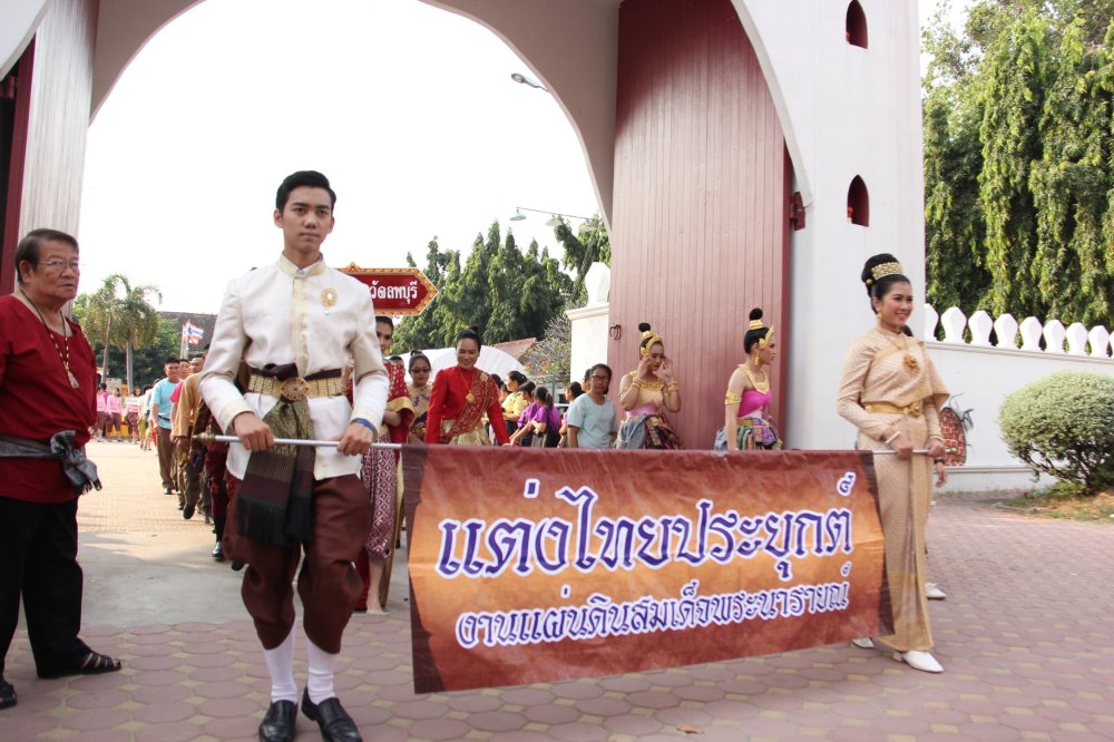 ที่สวนราชานุสรณ์ อำเภอเมืองลพบุรี นายสุปกิต โพธิ์ปภาพันธุ์ ผู้ว่าราชการจังหวัดลพบุรี เปิดกิจกรรมรณรงค์แต่งไทยในงานแผ่นดินสมเด็จพระนารายณ์มหาราช ครั้งที่ 32 นำเดินขบวนรณรงค์แต่งไทย พร้อมด้วยนางจุรีพร โพธิ์ปภาพันธ์ นายกเหล่ากาชาดจังหวัดลพบุรี โดยมีหน่วยงานทั้งภาครัฐ ภาคเอกชน องค์กรภาคส่วนต่าง และสถาบันการศึกษาในจังหวัดลพบุรีกว่า 3,000 คน แต่งกายในชุดไทยในสมัยต่างๆ ทั้งชุดไทยในสมัยสมเด็จพระนารายณ์มหาราช ชุดไทยประยุกต์ และชุดแฟนซี ที่สื่อถึงประวัติศาสตร์ในสมัยสมเด็จพระนารายณ์มหาราช และสื่อถึงอัตลักษณ์ของจังหวัดลพบุรี โดยได้เดินรณรงค์ออกจากสวนราชานุสรณ์ อ.เมืองลพบุรี ตามเส้นทางในเขตชุมชนเมืองลพบุรี ผ่านโบราณสถานสำคัญ ได้แก่ พระนารายณ์ราชนิเวศน์ เทวสถานปรางค์แขก พระปรางค์สามยอด ศาลพระกาฬ ไปสิ้นสุดที่โรงเรียนพิบูลวิทยาลัย
