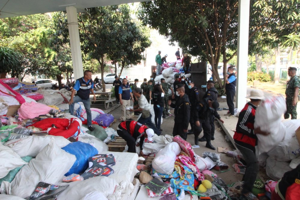 นายออน อุ่นทวีทรัพย์ นายด่านศุลกากรอรัญประเทศ พร้อม จนท.หน่วยงานความมั่นคงในพื้นที่ จ.สระแก้ว ส่งมอบของกลางคดีทรัพย์สินทางปัญญาและเครื่องหมายการค้า อาทิเสื้อผ้า, กางเกง,ชุดกีฬา,รองเท้า,ผ้าห่ม,ผ้าปูที่นอนและกระเป๋าต่างๆ รวม 189 คดี จำนวน 141,661 ชิ้น ประมาณ 25 ล้านบาท