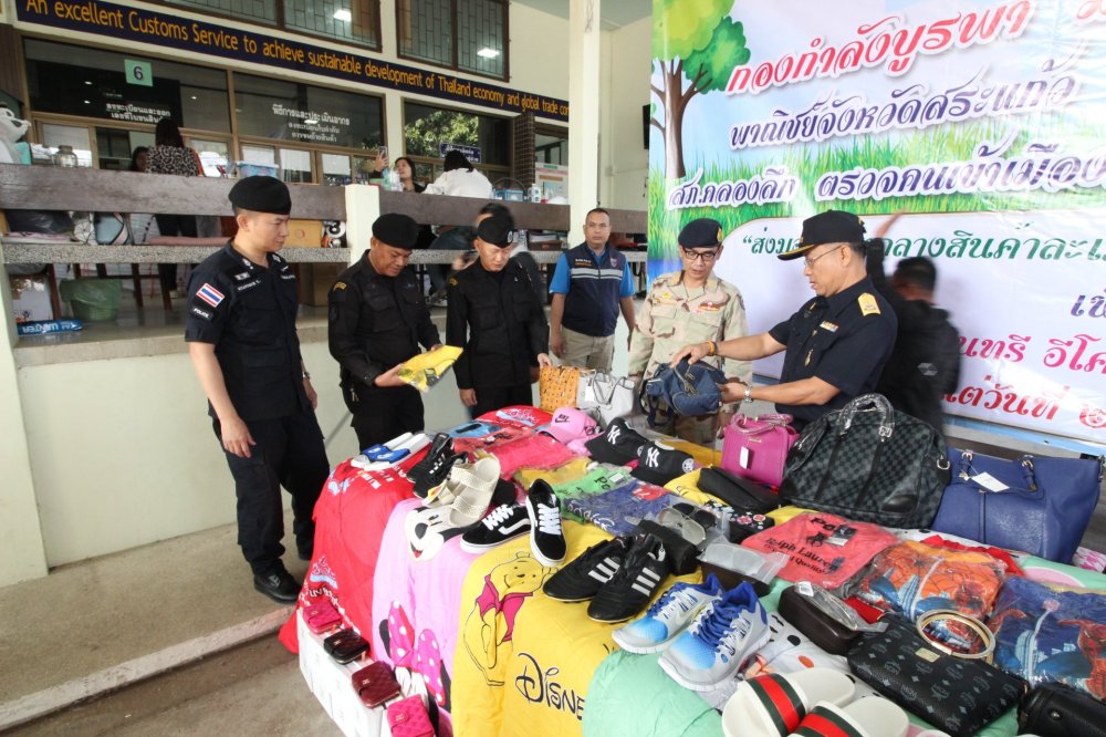 ศุลกากร อรัญประเทศ จ.สระแก้ว พร้อมหน่วยงานความมั่นคงส่งมอบสินค้าละเมิดลิขสิทธิ์ทรัพย์สินทางปัญญามูลค่ากว่า 25 ล้านบาทให้หน่วยงานที่เกี่ยวข้องนำไปเผาทำลาย