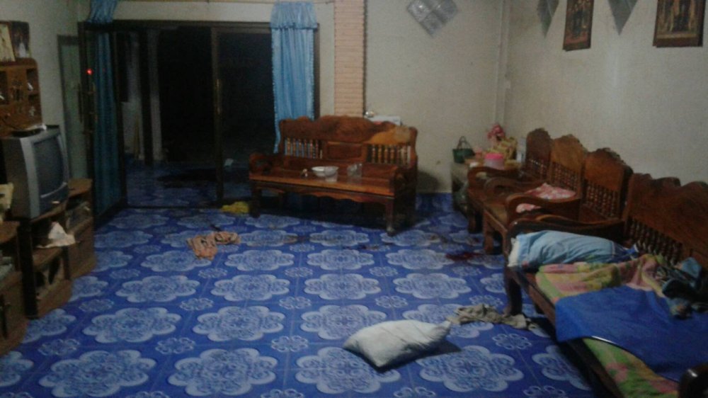 ทราบชื่อผู้ได้รับบาดเจ็บคือ นายวิญญู หรือโจ วรรณขาว อายุ 19 ปี อยู่บ้านเลขที่ 156/3 หมู่ 4 ต.ลิพัง อ.ปะเหลียน จ.ตรัง ได้รับบาดเจ็บอาการสาหัส นอนแน่นิ่งจมกองเลือดจำนวนมากอยู่บนพื้นบ้าน เจ้าหน้าที่จึงทำการช่วยเหลือชีวิตอย่างเร่งด่วน ก่อนนำตัวส่ง รพ.ศูนย์ตรัง และนำส่ง รพ.สงขลานครินทร์ (มอ.) อ.หาดใหญ่ จ.สงขลา ซึ่งขณะนี้ยังอยู่ในอาการโคม่า ตรวจสอบร่างกายพบถูกแทงด้วยอาวุธมีดปลายแหลมขนาดประมาณ 5 นิ้ว เข้าที่บริเวณ คอ เส้นเลือดใหญ่ขาด หน้าอก ไหปลาร้า สีข้างด้านขวาทะลุปอด รวม 7 แผล