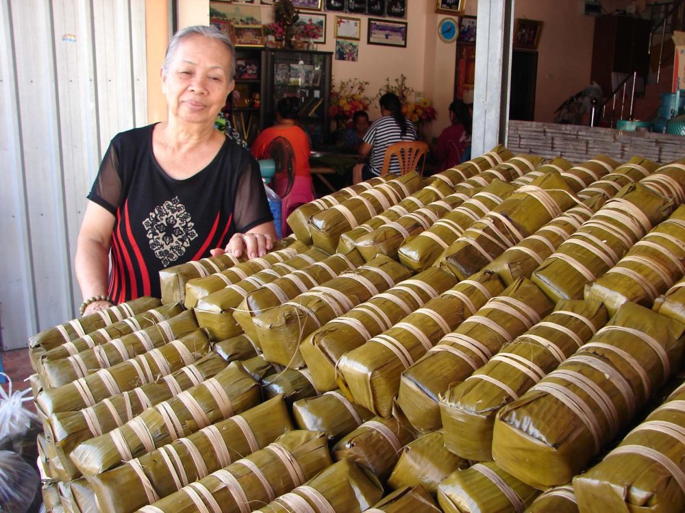 นายอรทัย มุกดาจารุจินดา แม่ค้าทำข้าวต้มมัดเวียดนาม บอกว่า ข้าวต้มมัดเวียดนาม หรือข้าวต้มญวน จะทำเฉพาะวันตรุษจีน 1 ปีมีครั้งเดียว เพื่อนำไปไหว้บรรพบุรุษ และฝากญาติๆ ที่เดินทางมาเยี่ยมในช่วงวันตรุษจีน ข้าวต้มมัดเวียดนามส่วนผสมมีข้าวเหนียว เนื้อหมู และถั่วเหลือง ประเพณีของชาวเวียดนามในเทศกาลตรุษจีน ข้าวต้มมัดเวียดนามสามารถเก็บไว้ประมาณ 1 อาทิตย์ ถ้าเก็บไว้ในตู้เย็นเก็บได้ประมาณ 1 เดือน