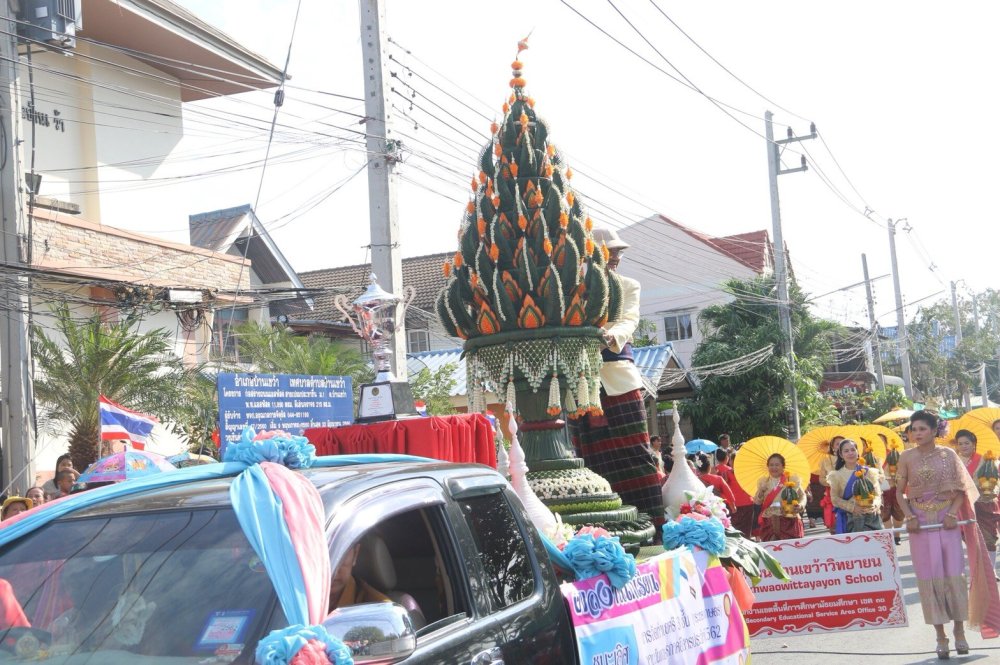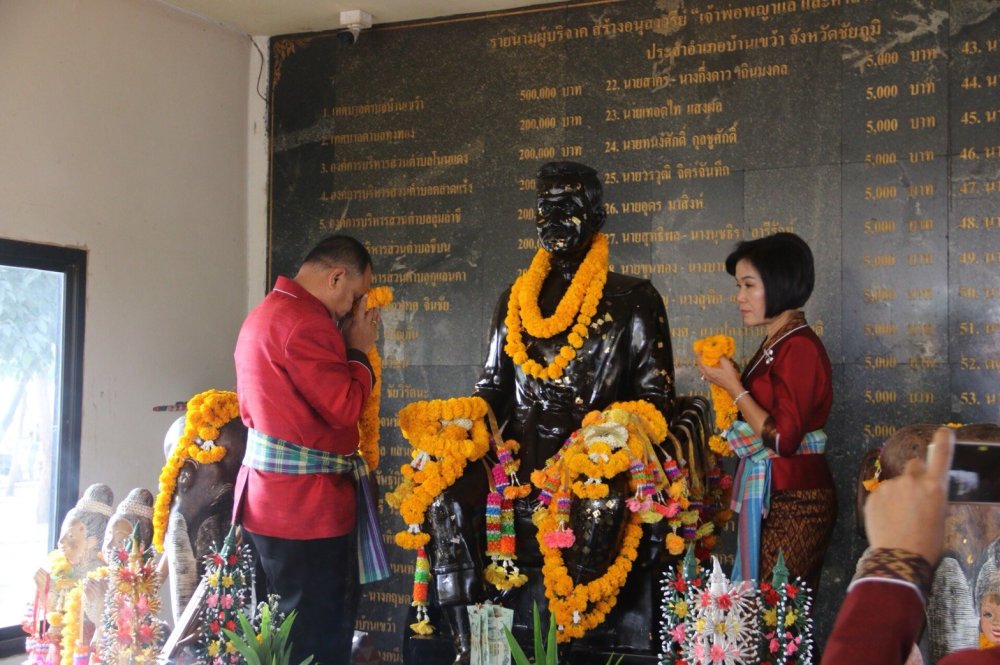 นายณรงค์ วุ่นซิ้ว ผู้ว่าราชการจ.ชัยภูมิ พร้อมด้วยนายวรศิษย์ พุฒจีบ นายอำเภอบ้านเข้า พร้อมตัวแทนทุกภาคส่วนในพื้นที่ทั้งภาครัฐเอกชน ชาวบ้านเขว้า นับหมื่นคน ร่วมใจจัดงานฉลองอนุสาวรีย์เจ้าพ่อพญาแลประจำอำเภอบ้านเขว้า และงานบุญลอมข้าวใหญ่ งานไหมมัดหมี่ของดีบ้านเขว้า ในปีนี้ที่จัดต่อเนื่องกันมาเป็นปีที่ 10 แล้ว