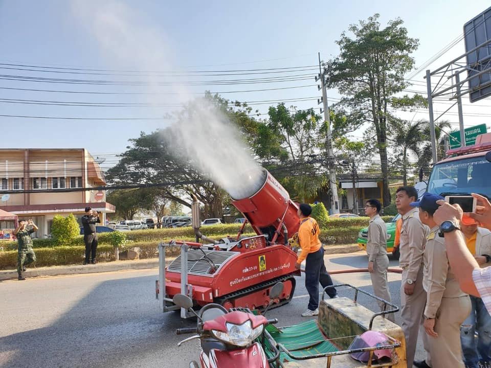 นอกจากนี้นายอำเภออรัญประเทศ ได้ประสานไปยังสำนักงานป้องกันและบรรเทาสาธารณภัยจังหวัดสระแก้ว ร่วมกับเทศบาลเมืองอรัญประเทศ นำชุดอุปกรณ์ดับเพลิงควบคุมระยะไกล LUF60 (เครื่องพ่นละอองน้ำ) จากศูนย์ป้องกันบรรเทาสาธารณภัยเขต 3 จังหวัดปราจีนบุรี มาทำการพ่นละอองน้ำเพื่อดักจับฝุ่นละอองที่เกินค่ามาตรฐานในเขตพื้นที่ อ.อรัญประเทศ จ.สระแก้จากนั้น ได้ร่วมกับสำนักงานขนส่งจังหวัดสระแก้ว และสถานีตำรวจภูธรอรัญประเทศ และสถานีตำรวจภูธรคลองลึก ร่วมกันตั้งด่านตรวจจับรถที่มีควันดำเกินค่ามาตรฐานบนถนนสายหลักในเขต อ.อรัญประเทศ และดำเนินการตามกฎหมายอย่างจริงจัง ที่มีความเป็นห่วงสถานการณ์ฝุ่นละอองขนาดเล็กหรือ PM2.5 เกินมาตรฐานในเขตพื้นที่จังหวัดสระแก้ว โดยเฉพาะพื้นที่อำเภออรัญประเทศ จ.สระแก้ว เร่งดำเนินการเพื่อลดค่าฝุ่นละอองที่เกินค่ามาตรฐานในพื้นที่ อ.อรัญประเทศ อย่างจริงจังโดยได้ประสานความร่วมมือกับหลายหน่วยงานในพื้นที่คาดว่าจะสามารถลดอัตราของฝุ่นละอองที่เกินค่ามาตรฐานในเขต อ.อรัญประเทศ จ.สระแก้ว ได้ในเร็ววันนี้