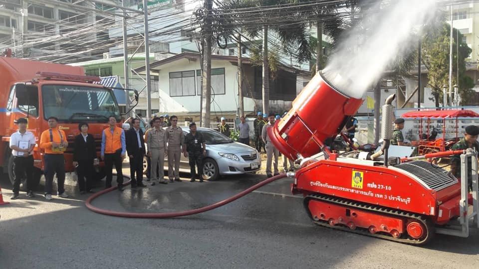 นายวิชิต ชาตไพสิฐ ผู้ว่าราชการจังหวัดสระแก้ว สั่งการให้ นายสวนิต สุริยกุล ณ อยุธยา นายอำเภออรัญประเทศ ติดตามสถานการณ์ และดำเนินมาตรการลดสถานการณ์ฝุ่นละอองขนาดเล็กไม่เกิน 2.5 ไมครอน หรือ PM 2.5 เกินมาตรฐาน ในเขตพื้นที่อำเภออรัญประเทศ ที่ได้ดำเนินการแก้ไขปัญหาและมาตรการป้องกัน 3 มาตรการ คือ ประสานสำนักงานป้องกันและบรรเทาสาธารณภัยจังหวัดสระแก้ว ร่วมกับเทศบาลเมืองอรัญญประเทศ นำชุดอุปกรณ์ดับเพลิงควบคุมระยะไกล LUF60 จากศูนย์ป้องกันและบรรเทาสาธารณภัยเขต 3 ปราจีนบุรี พ่นละอองน้ำเพื่อดักจับฝุ่นละอองที่เกินค่ามาตรฐานในเขตพื้นที่อำเภออรัญประเทศ โดยเริ่มต้นจากจุดโรงพยาบาลอรัญประเทศ แล้วไปดำเนินการในจุดต่างๆ