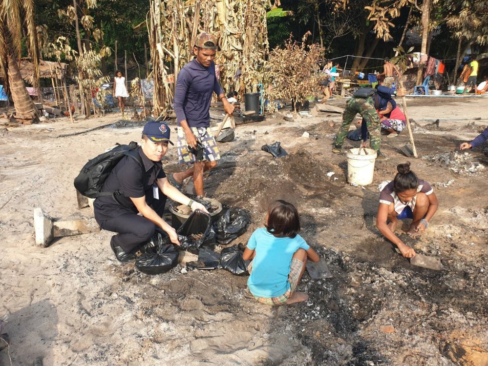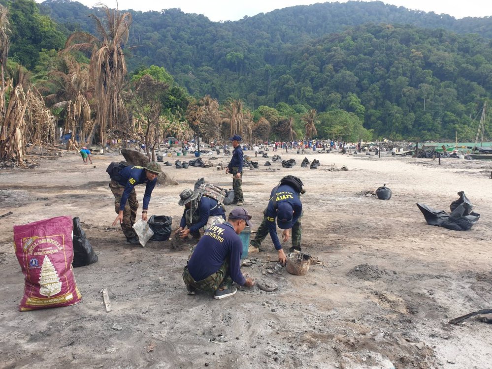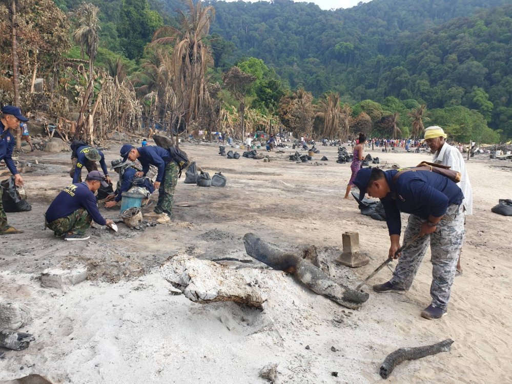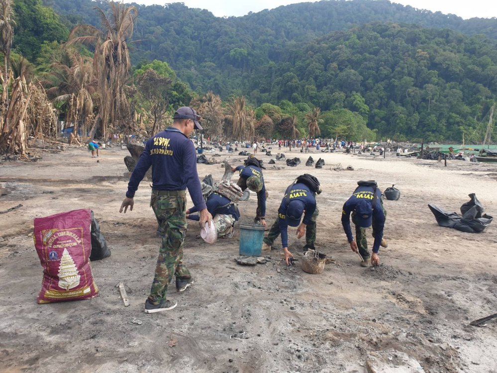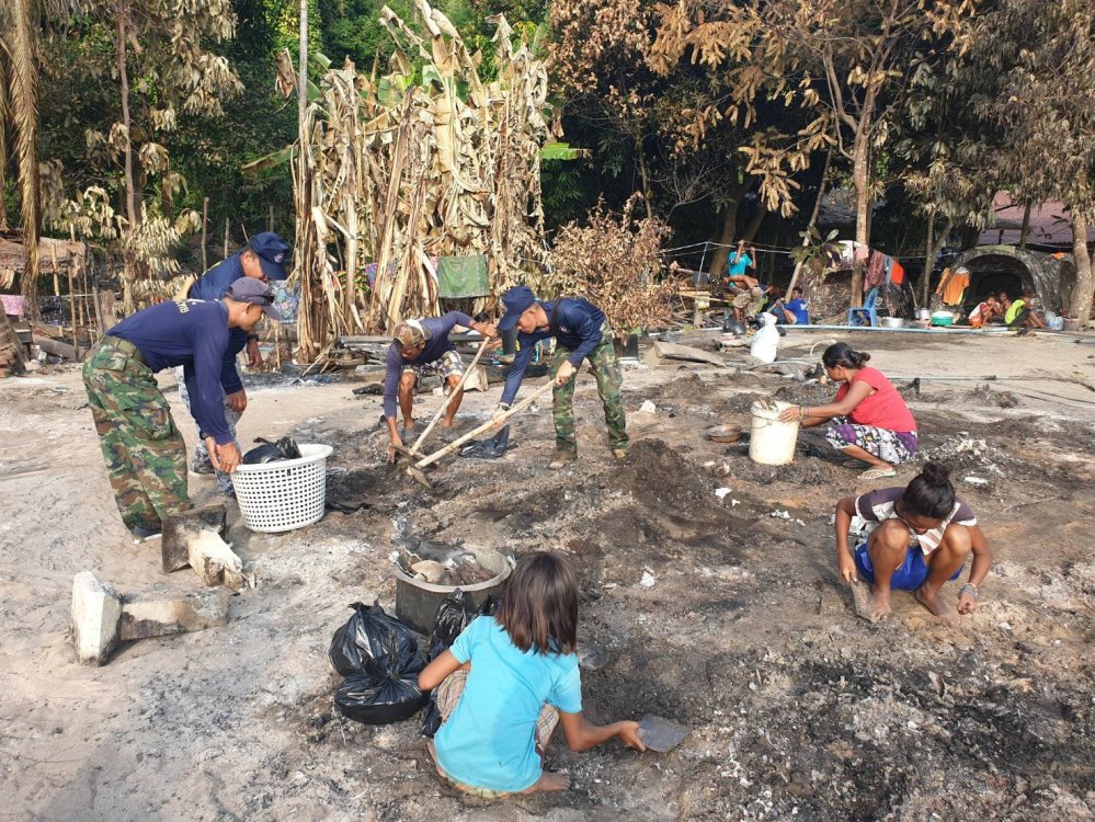ขณะที่ทาง กองบัญชาการกองทัพไทยโดยหน่วยพัฒนาการเคลื่อนที่ 4-6 สำนักงานพัฒนาภาค 4 หน่วยบัญชาการทหารพัฒนา พันเอก ณัฐกฤต สันป่าแก้ว ผู้บังคับหน่วยพัฒนาการเคลื่อนที่ 46 พร้อมชุดปฏิบัติการเพื่อสำรวจและประเมิน ความเสียหาย และช่วยเหลือเป็นกำลังใจให้กับชาวมอแกนในการเก็บกวาดเศษซากหักพังของบ้านเรือนที่ถูกไฟไหม้ จำนวน 61 หลัง จากทั้งหมด 80 หลัง (ไม่ถูกไฟไหม้ จำนวน 19 หลัง) เพื่อเตรียมการก่อนการแบ่งมอบพื้นที่ให้แต่ละส่วนราชการเข้าก่อสร้างบ้านพักหลังใหม่ ซึ่งหน่วยบัญชาการทหารพัฒนา จะรับการแบ่งมอบจาก จ.พังงา จำนวน 10 หลัง ณ ชุมชนชาวมอร์แกน หมู่เกาะสุรินทร์ ต.เกาะพระทอง อ.คุระบุรี จ.พังงา