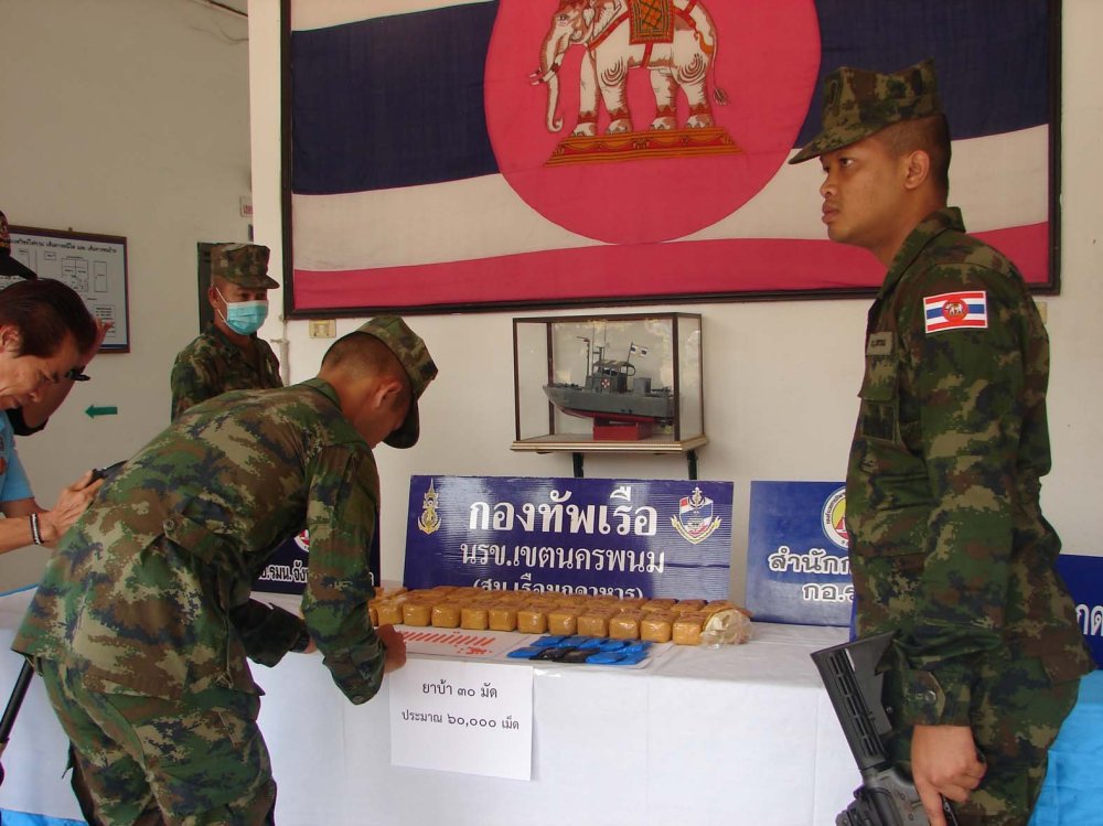 นรข.สนธิกำลังจับยาบ้า 59,000 เม็ด มุกดาหาร-สถานีเรือมุกดาหาร สนธิกำลังหน่วยงานความมั่นคงในพื้นที่ จับกุมยาบ้าจำนวน 59,000 เม็ด ซุกซ่อนในกระสอบปุ๋ยซึ่งวางอยู่ข้างเสาไฟฟ้า