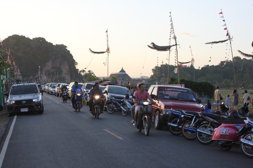 นักท่องเที่ยวแห่ชมความสวยงามของลูกลมชนิดและขนาดต่างๆ นับ 1,000 ดอก และบรรยากาศท้องทุ่งนายามเย็นบริเวณถ้ำเขาช้างหาย ต.นาหมื่นศรี อ.นาโยง ทำให้รถจอดยาวเหยียดสองข้างทางกว่า 3 กิโลเมตร