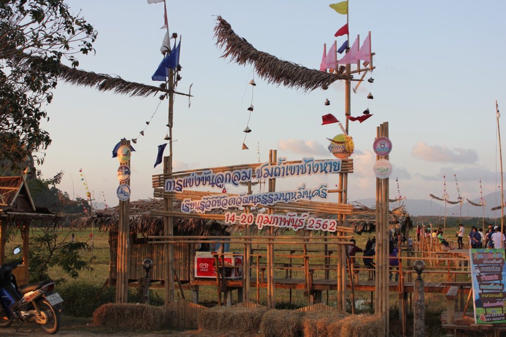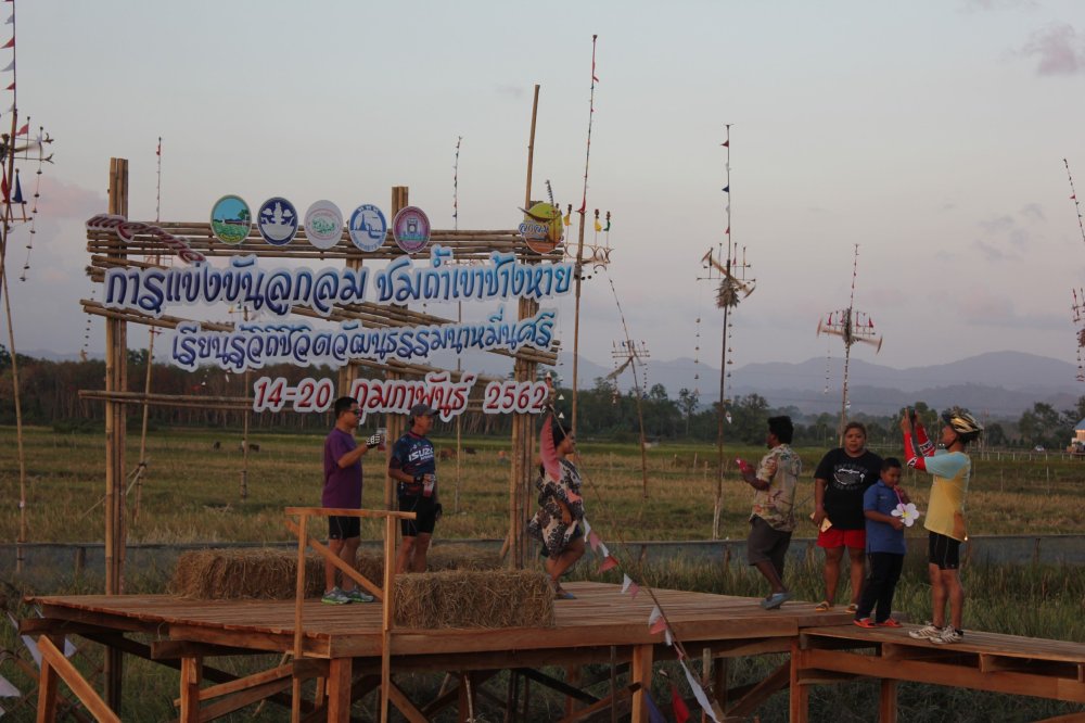 ลูกลมเรียงรายไปตามแนวยาวลำเหมืองชลประทาน โดยลูกลมที่ติดตั้งนั้นไว้เพื่อการแข่งขัน มีหลายขนาด เพื่อประกวดความสวยงาม และเสียงของลูกลมที่ดังฟังแล้วเพลิดเพลินใจในท้องทุ่งนาหลังเก็บเกี่ยวข้าว มีนักท่องเที่ยว ต่างเดินทางมา เพื่อถ่ายภาพ ชมความสวยงามของลูกลมและฟังเสียงลูกลมที่ดังพร้อม ๆ กันจะให้เสียงที่ไพเราะ ปีนี้ลมพัดแรงทำให้เสียงลูกลมดังไม่ขาดสาย โดยนักท่องเที่ยวและชาวตรังเอง จะมาถ่ายภาพกันจนพระอาทิตย์ตกดิน และแวะรับประทานอาหาร ที่มีร้านค้าเปิดให้บริการเป็นจำนวนมาก