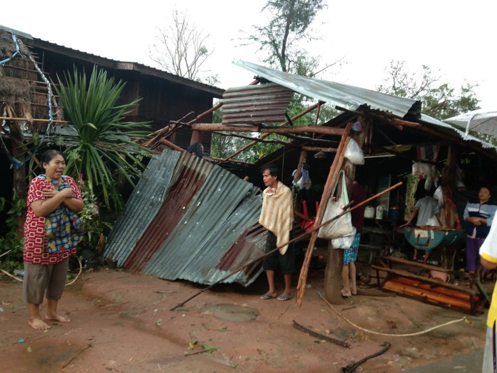 โดยแรงลมทำให้ หลังคาบ้านเรือนประชาชนถูกพัดปลิวไปทั่วหมู่บ้าน ชาวบ้านหลายสิบรายต้องพากันอุ้มลูกหอบหลานวิ่งหนีตายไปหาหลบในที่ปลอดภัยกันอลหม่าน