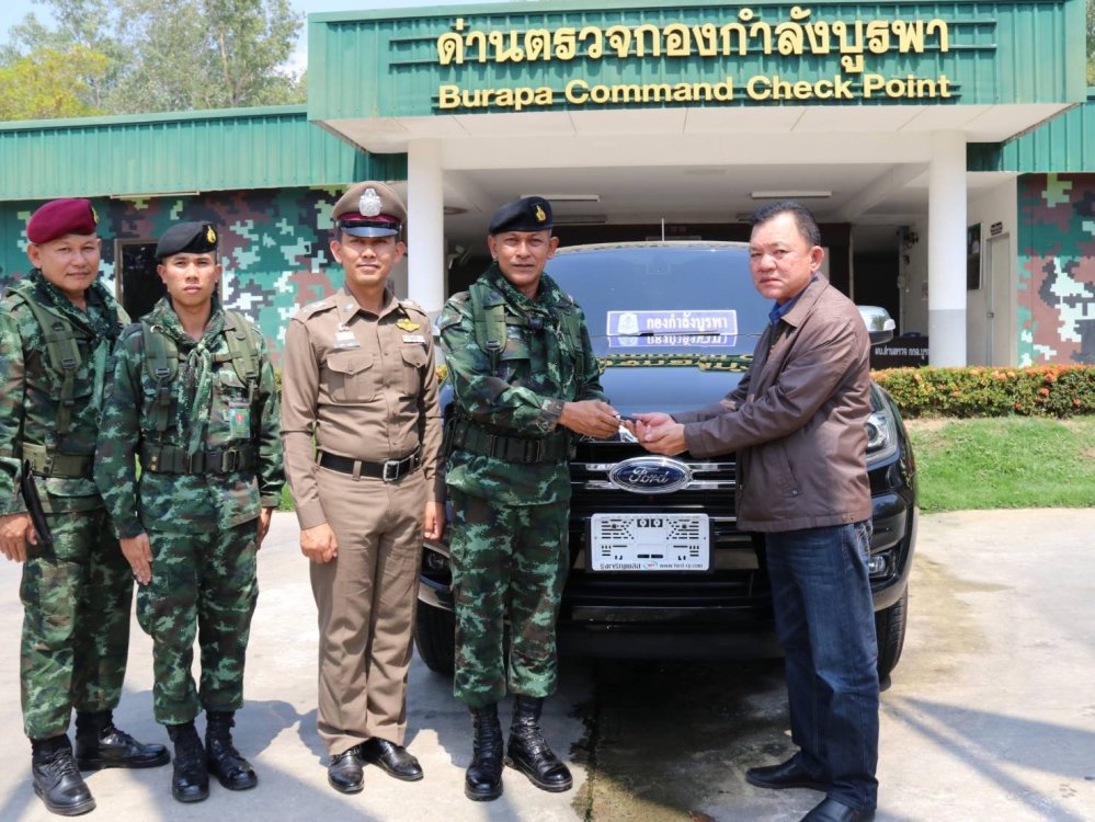 พ.อ.ชิษณุพงศ์ รอดศิริ รองผู้บัญชาการกองกำลังบูรพา พ.อ.เสกสรรค์ พรหมศักดิ์ รองเสธนาธิการกองกำลังบูรพา ตัวแทนจาก พ.ต.อ.เผ่าภากร รามนุช รองผู้บังคับการตำรวจภูธรจังหวัดสระแก้ว ตัวแทนไฟแนนซ์ชนชาติ และนายทหารจากกองกำลังบูรพา ร่วมกันคืนรถให้ไฟแนนซ์ชนชาติ ที่ตรวจยึดรถยนต์ที่ถูกโจรกรรมไปแล้วกำลังจะนำออกขายประเทศเพื่อนบ้าน