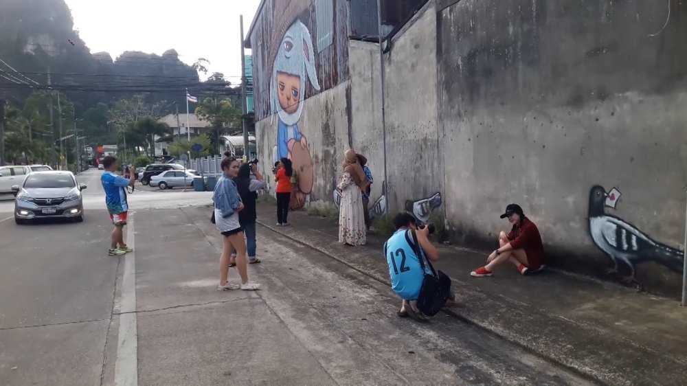 ชาวบ้านเมืองพังงา แห่ชมภาพสตรีทอาร์ท หนูมาดีร่อนแร่ เข้าร่วม Check – in พังงา เสน่ห์กราภูงา