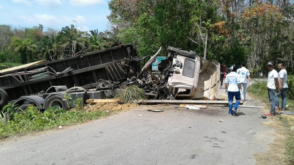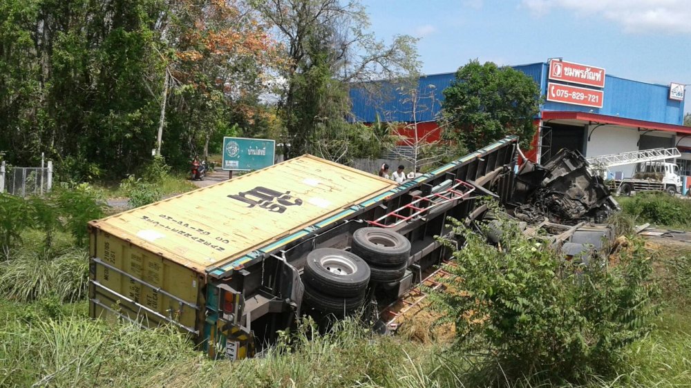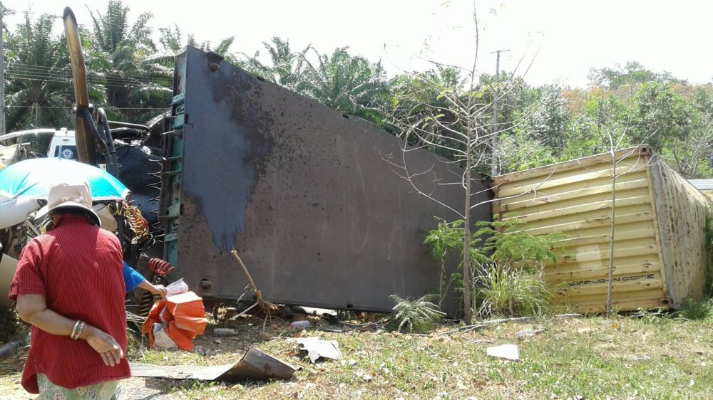 รับแจ้งจาก วิทยุตำรวจ 191 ว่ามีเหตุรถเทรนเลอร์ 22 ล้อ บรรทุกตู้คอนเทนเนอร์ตกข้างถนนพลิกคว่ำ มีผู้ได้รับบาดเจ็บ จึงแจ้งให้ศูนย์นเรนทร 1669 และหน่วยกู้ภัย มูลนิธิการกุศลสถานตรัง รุดไปตรวจสอบยังที่เกิดเหตุ ซึ่งเป็นถนนสายเลี่ยงเมือง ทางเข้าบ้านไสหยี หมู่ที่ 3 ต.นาพละ อ.เมือง จ. ตรัง พบชาวบ้านและคนที่ผ่านไปมายืนมุงดูเหตุการณ์กันจำนวนมาก ข้างถนนที่เป็นร่องน้ำ พบรถเทรนเลอร์ 22 ล้อ ยี่ห้ออีซูสุ ทะเบียน 70-6532 สงขลา บรรทุกตู้คอนเทนเนอร์ 1 ตู้สภาพพลิกคว่ำ หัวรถพังยับ ข้าวของสำภาระภายในรถตกหล่นเกลื่อนพื้น และทราบชื่อคนขับคือ นายนพศักดิ์ แสงมณี อายุ 40 ปี อยู่บ้านเลขที่ 673 หมู่ที่ 3 ถ.เพชรเกษม ต.ควนลัง อ.หาดใหญ่ จ.สงขลา ซึ่งได้รับบาดเจ็บมีรอยถลอกเพียงเล็กน้อย โดยนายนพศักดิ์เล่าเหตุการณ์ให้ฟังว่า ตนเองขับรถเทรนเลอร์ 22 ล้อบรรทุกตู้คอนเทนเนอร์ยางก้นถ้วยหนักประมาณ 30 ตัน จาก อ.คลองท่อม จ.กระบี่ เพื่อไปส่งที่ปาดังเบซาร์ ชายแดนไทย-มาเลเซีย ระหว่างทางพักเที่ยงจึงแวะกินข้าว จากนั้นออกเดินทางต่อ ในสภาพที่ค่อนข้างจะง่วงนอน จากนั้นเกิดอาการวูบหลับใน ทำให้รถบรรทุกเสียหลักตกลงไปข้างถนน ซึ่งตอนเกิดเหตุยอมรับว่าตนไม่รู้สึกตัวไปชั่วขณะ แต่ยังโชคดีที่ตนเองไม่ได้รับบาดเจ็บรอดมาได้อย่างหวุดหวิดจากการเห็นสภาพรถแล้ว ตั้งแต่ขับรถมายังไม่เคยมีอาการแบบนี้ ส่วนทรัพย์สินที่ได้รับความเสียหายยินดีรับผิดชอบให้ทั้งหมด