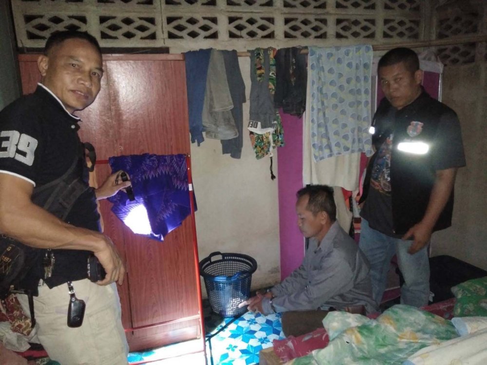 พบบุคคลที่ได้รับแจ้งได้เดินเข้ามาในบ้านหลังดังกล่าว เจ้าหน้าที่ได้เข้าแสดงตนเพื่อตรวจสอบ ทราบชื่อ นายนิวัฒน์ หรือแต๋น แก้วดี อายุ 54 ปี บ้านเลขที่ 77 หมู่ 6 ตำบลหนองเอี่ยน อำเภอคำชะอี จังหวัดมุกดาหาร ซึ่งเป็นกำนันตำบลหนองเอี่ยน เจ้าหน้าที่ขอตรวจค้นตัวนายนิวัฒน์ ฯ พบยาบ้าจำนวน 70 เม็ด บรรจุอยู่ในถุงพลาสติกใสชนิดรูดปิด-เปิด ซุกซ่อนอยู่ในรองเท้าข้างขวาที่นาย นิวัฒน์ ฯ สวมใส่อยู่ขณะเจ้าหน้าที่เข้าจับกุม