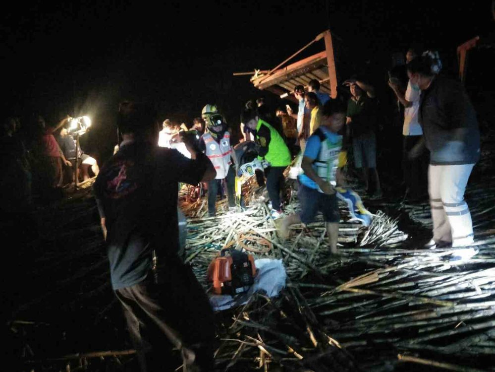 ที่เกิดเหตุพบรถเก๋งโตโยต้ายารีส สีดำ หมายเลขทะเบียน ญฬ 4614 กรุงเทพมหานคร ถูกรถพ่วง 18 ล้อบรรทุกอ้อย ยี่ห้อฮีโน่ ทะเบียน 82-7272 ฉะเชิงเทรา ซึ่งมีน้ำหนักหลายสิบตันล้มทับ สภาพพังยับเยินทั้งคัน โดยมีผู้เสียชีวิตและบาดเจ็บติดอยู่ภายในรถเก๋งร้องขอความช่วยเหลือ เจ้าหน้าที่กู้ภัย-กู้ชีพต้องเร่งนำเครื่องตัดถ่างตัดตัวถังรถเพื่อนำผู้เสียชีวิตและผู้บาดเจ็บออกมาจากตัวรถเก๋ง ทราบชื่อผู้เสียชีวิต 2 ราย ซึ่งเป็นสองสามีภรรยา คือนายนพดล ทองกูล อายุ 50 ปี คนขับรถเก๋ง นางจุฬารัตน์ ทองกูล อายุ 47 ปี ทั้งสองเป็นชาว จ.สมุทรปราการ นอกจากนี้ยังผู้บาดเจ็บสาหัส 1 รายติดอยู่ในรถคือ นายกิตติพงษ์ บุญไชยยงค์ อายุ 26 ปี ชาว จ.กาฬสินธุ์ ที่นั่งโดยสารมากับรถเก๋ง