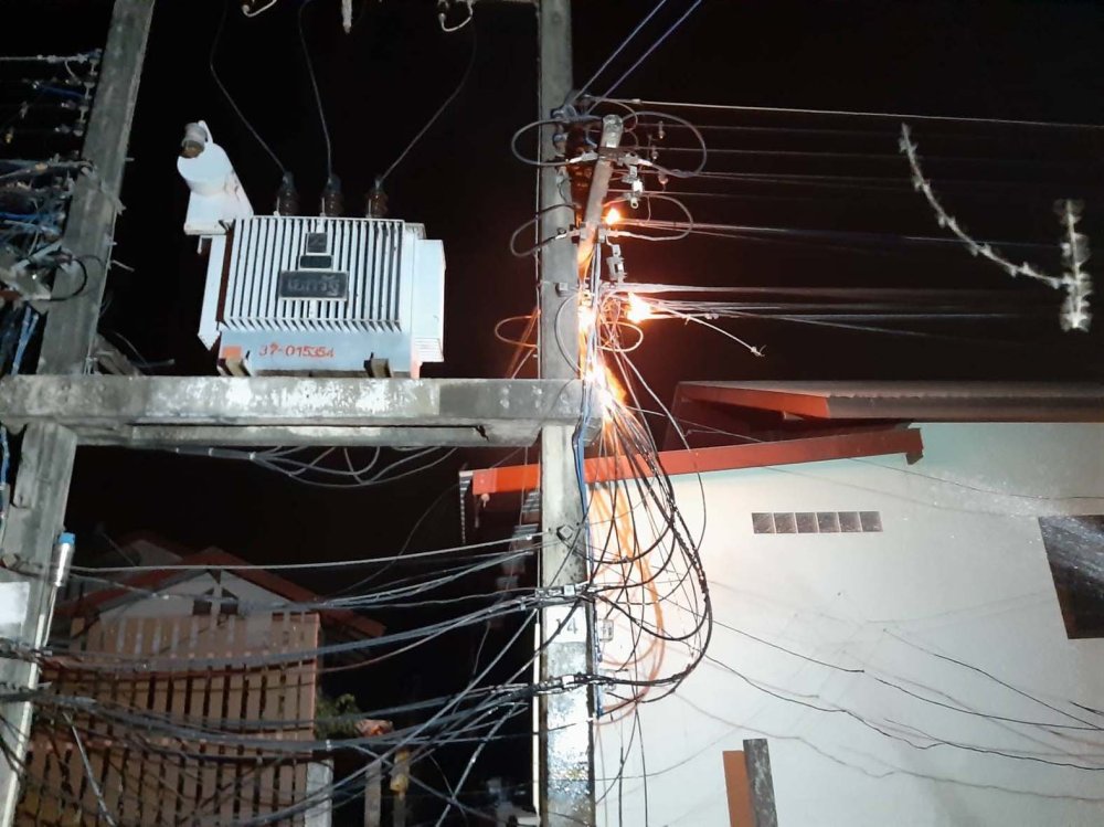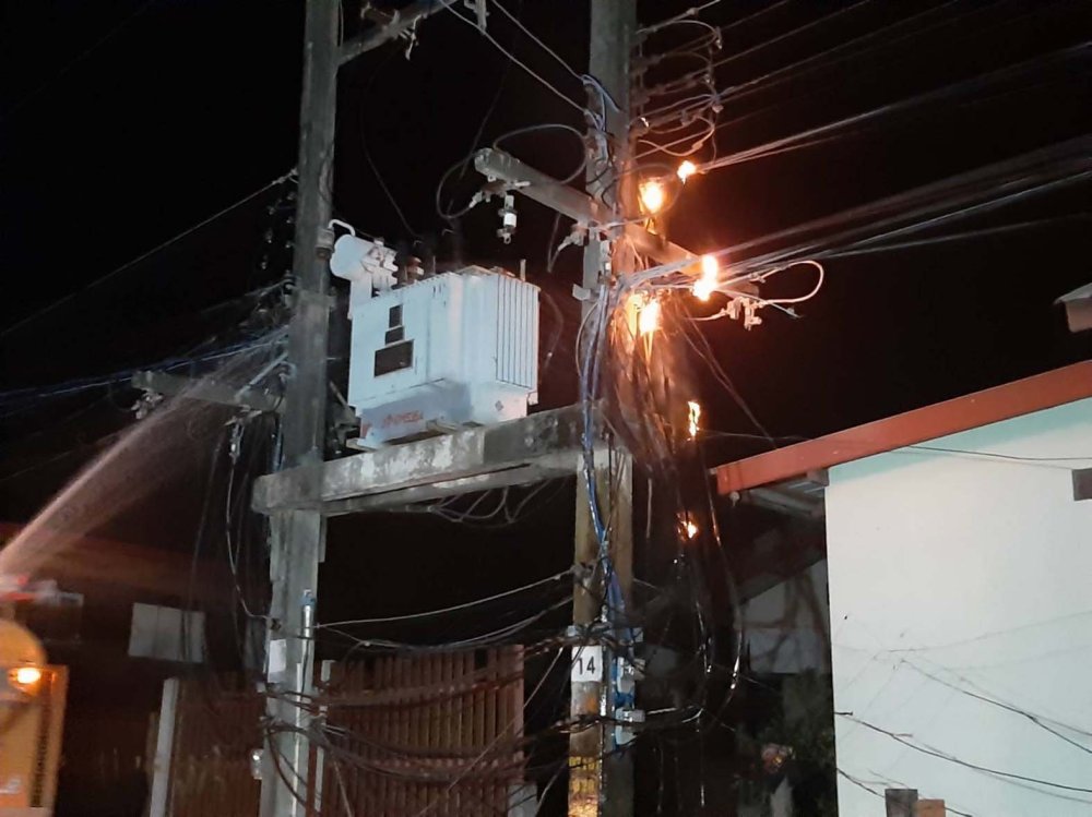 ระทึก เกิดเหตุไฟไหม้สายไฟฟ้าสายสื่อสารกลางชุมชนบ้านบางทรายใหญ่ ทำให้ไฟฟ้าดับนับชั่วโมง