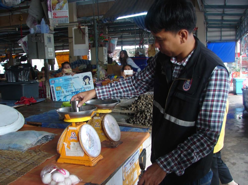 ส่วนตราชั่งนั้นส่วนใหญ่มีความเที่ยงตรง และที่ไม่เที่ยงตรงก็ปรับให้ตรง เนื่องจากมีกรใช้งานระยะเวลานานก็มีการเสื่อมสภาพไปตามกาลเวลา ส่วนการติดราคาส่วนใหญ่ก็ได้ติดป้ายราคาอย่างชัดเจน ฝากพ่อค้าแม่ค้าในตลาดนอกจากจะดูแลเรื่องตราชั่ง และราคาสินค้าแล้ว อยากให้เอาใจใส่โอบอ้อมอารี เป็นมิตรต่อผู้ซื้อ เพื่อพัฒนาตลาดให้มีความเชื่อมั่นของผู้ซื้อ ในอนาคตกระทรวงพาณิชย์จะลงพื้นที่เชิญพ่อค้าแม่ค้าเป็นสมาชิกร้านธงฟ้าประชารัฐ โดยใช้แอปฟลิเคชั่น ถุงเงิน รองรับบัตรสวัสดิการแห่งรัฐ ตั้งเป้าหายไว้ว่าตลาดแห่งนี้ในอนาคตยกระดับตลาด 4.0 ของประเทศ เป็นแห่งแรกของมุกดาหาร