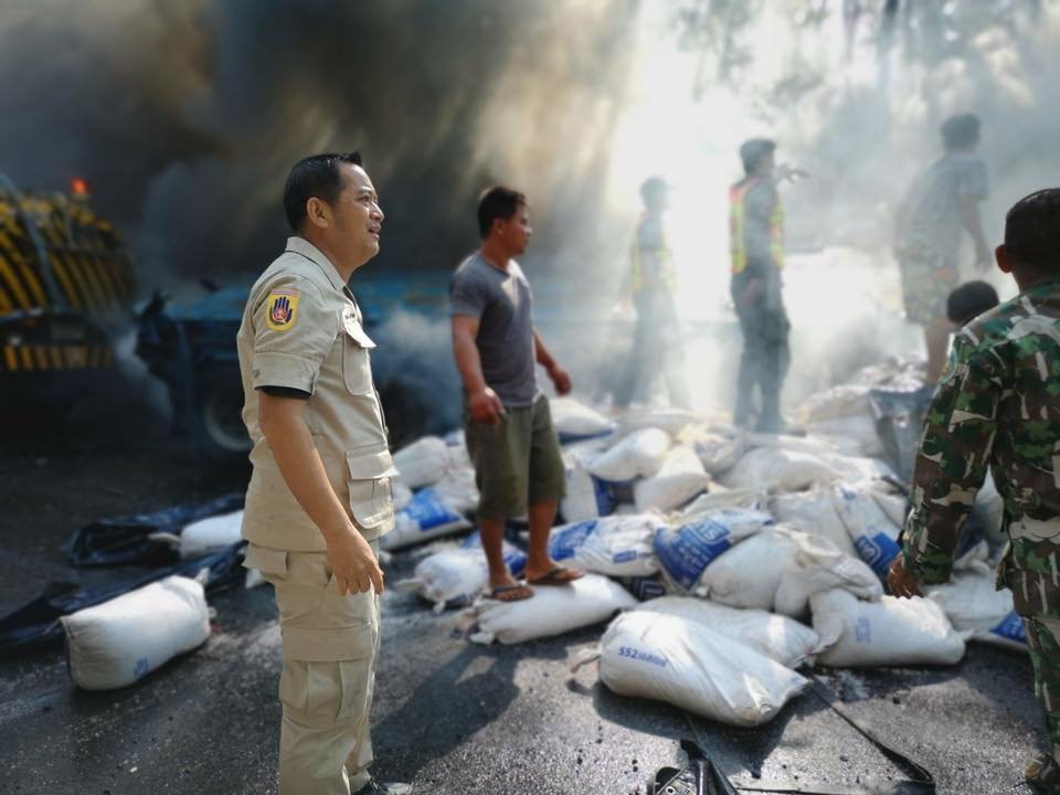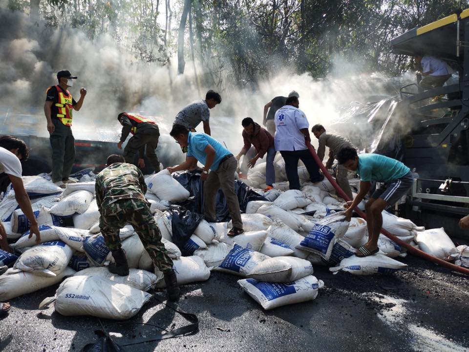 เหตุเกิดบนถนนสาย 348 (ตาพระยา-บุรีรัมย์)ที่เกิดเหตุมีรถบรรทุกพ่วง 18 ล้อ บรรทุกเกลือเต็มคัน ทะเบียน 70-5860 (ลูกพ่วง 70-5861) จ. ขอนแก่น เสียหลักเบรคไม่อยู่มาตั้งแต่บนเขาวิ่งลงมาชนกับรถยนต์เก๋งส่วนบุคคล ทะเบียน 4ธ-1142 กรุงเทพมหานคร รถกระบะ รถตู้ รวม 5 คัน นอกจากนั้นยังมีรถเกรดปูยางผิวจราจรของกรมทาง ที่กำลังก่อสร้างถนนถูกชนด้วย ใกล้กันพบเกลือตกกระจัดกระจายเต็มถนน และมีไฟลุกไหม้ด้วย ทำให้รถยนต์ไม่สามารถสัญจรไปมาได้ จนท.ต้องเร่งนำเอารถดับเพลิงจำนวน 4 คันจาก อบต.ใกล้เคียงเข้ามาดับไฟ ส่วนคนเจ็บ จนท.กู้ชีพทัพราชได้เร่งนำตัวผู้บาดเจ็บ 9 คนส่งโรงพยาบาลตาพระยาเพื่อรักษาอาการบาดเจ็บ ส่วนผู้เสียชีวิตจำนวน 3 คนยังคงติดอยู่ในรถยังไม่สามารถนำออกมาได้ โดยคาดว่าจะใช้เวลาเก็บกู้ทั้งวันจึงจะสามารถเปิดให้รถวิ่งได้