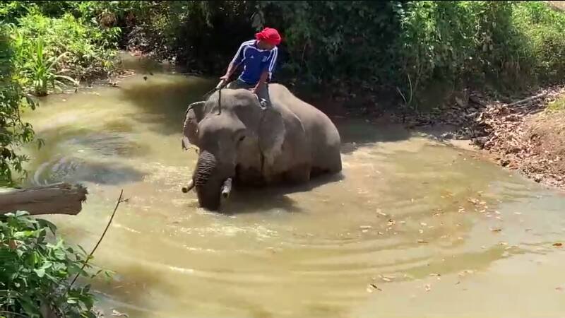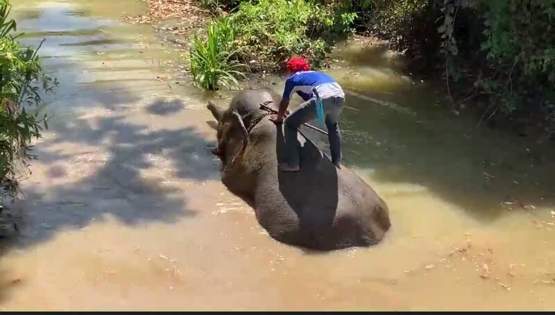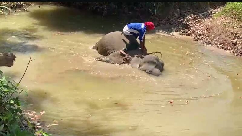 เจ้าของช้างเพื่อการท่องเที่ยว อ.นาโยง จ.ตรัง หมั่นพาช้างอาบน้ำวันละ 10 รอบเพื่อให้ช้างลดอาการหงุดหงิด หรือเป็นลมจากสภาพอากาศที่ร้อนจัด ขณะที่แหล่งน้ำหลายแห่งเริ่มแห้งขอด