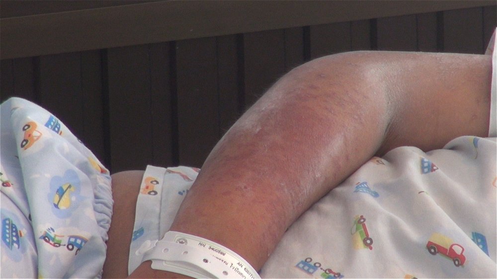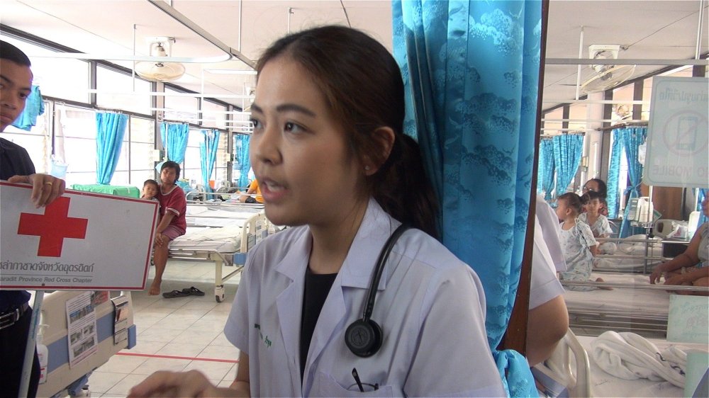 ที่ตึกผู้ป่วยนอก กุมารเวช 3 โรงพยาบาลอุตรดิตถ์ นายธนากร อึ้งจิตรไพศาล ผู้ว่าราชการจังหวัดอุตรดิตถ์ พร้อมด้วยเหล่ากาชาดจังหวัดฯ หัวหน้าบ้านพักเด็กและครอบครัวจังหวัดฯ สำนักงานพัฒนาสังคมและความมั่นคงของมนุษย์จังหวัดฯ (พมจ.) เข้าเยี่ยม ด.ญ.พลอยพรรณ ไวปัญญา อยู่บ้านเลขที่ 54/1 ม.3.ต.ป่าคาย อ.ทองแสนขัน จ.อุตรดิตถ์ นักเรียนชั้นประถมศึกษาปีที่ 5 โรงเรียนบ้านนาป่าคาย ซึ่งป่วยเป็นโรคภูมิแพ้ตัวเอง มีไข้สูง หน้าและตัวบวมจนดวงตาแทบปิดสนิท ผิวหนังทั่วร่างกายลอก และเจ็บปวดภายในร่างกาย