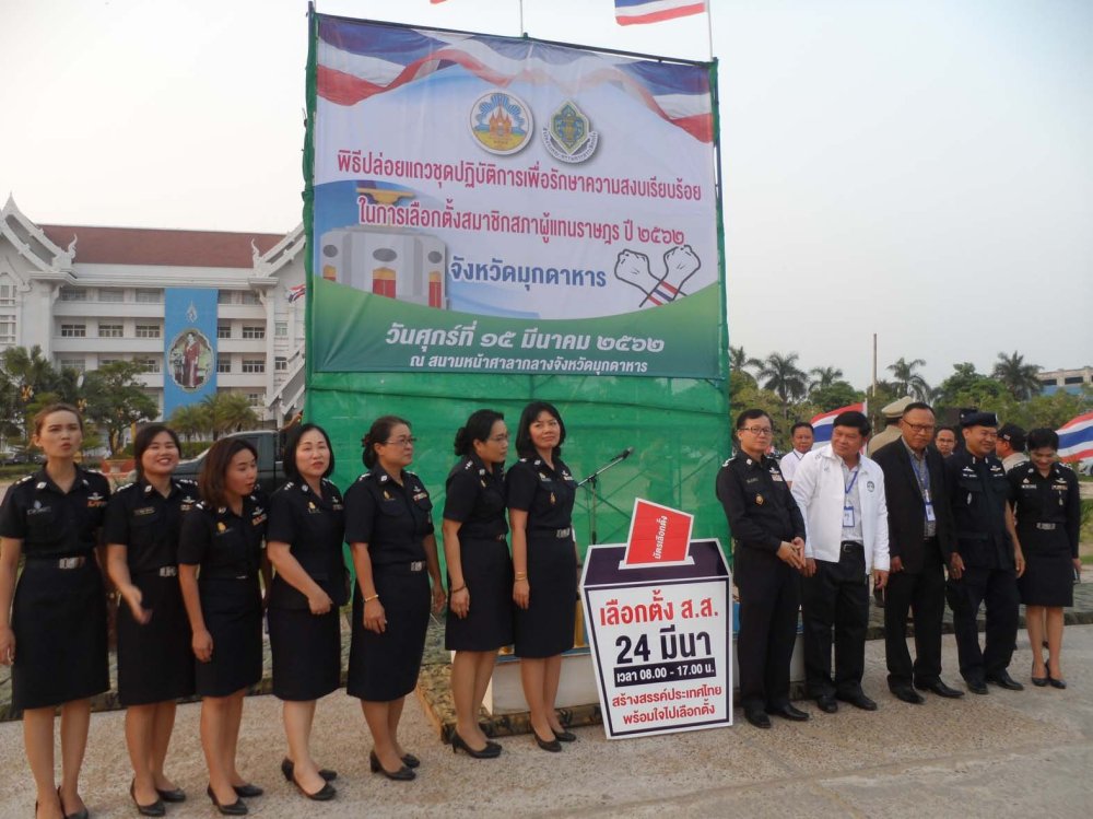 นายอุทิน สุทธิสาร ผู้อำนวยการสำนักงานคณะกรรมการการเลือกตั้งประจำจังหวัดมุกดาหาร เปิดเผยว่า ด้วยบัดนี้ได้มีพระราชกฤษฎีกากำหนดให้มีการเลือกตั้งสมาชิกสภา ผู้แทนราษฎรเป็นการทั่วไป ซึ่งคณะกรรมการการเลือกตั้งประกาศกำหนดวันเลือกตั้ง ในวันอาทิตย์ที่ 24 มีนาคม 2562 จังหวัดมุกดาหารมีผู้สนใจสมัครรับเลือกตั้งสภาผู้แทนราษฎร จำนวน 73 คน แยกเป็นเขตเลือกตั้งที่ 1 จำนวน 35 คน เขตเลือกตั้งที่ 2 จำนวน 38 คน มีพรรคการเมืองแข่งขันกันสูง ดังนั้น เพื่อเป็นการป้องปรามผู้ที่คิดจะทำผิดกฎหมายเลือกตั้งในช่องทางใด ๆ เช่น การแจกจ่ายเงินซื้อเสียง การขนคนมาฟังปราศรัย การทำลายป้ายผู้สมัคร และการขนคนมาลงคะแนน เป็นต้น อันจะส่งผลให้การเลือกตั้งไม่สุจริตและเที่ยงธรรม สำนักงานคณะกรรมการการเลือกตั้งประจำจังหวัดมุกดาหาร ร่วมกับศูนย์สนับสนุนการเลือกตั้งสมาชิกสภาผู้แทนราษฎรจังหวัดมุกดาหาร จัดให้มีพิธีพิธีปล่อยแถวชุดปฏิบัติการเพื่อรักษาความสงบเรียบร้อยในเลือกตั้งสมาชิกสภา ผู้แทนราษฎรจังหวัดมุกดาหารขึ้น