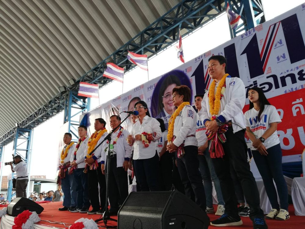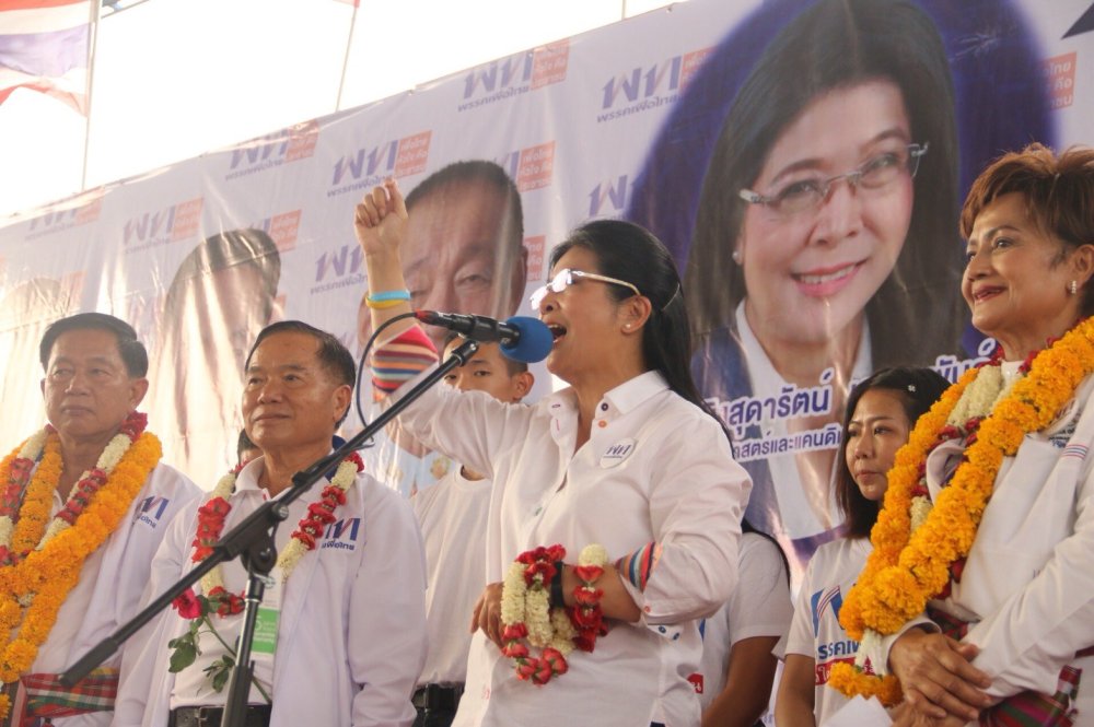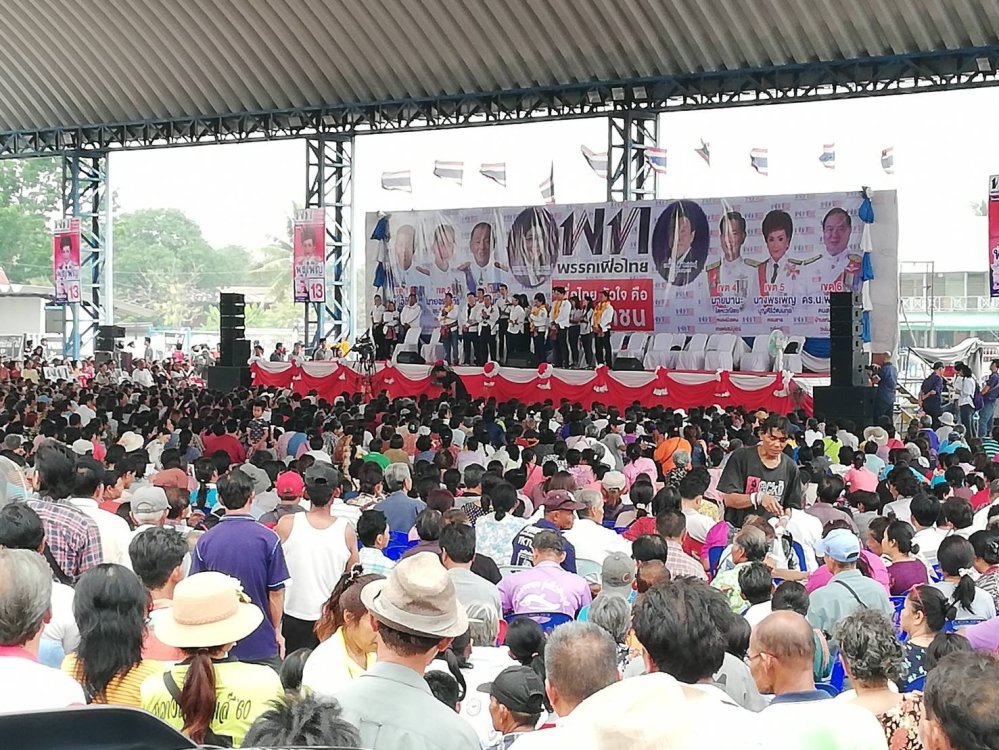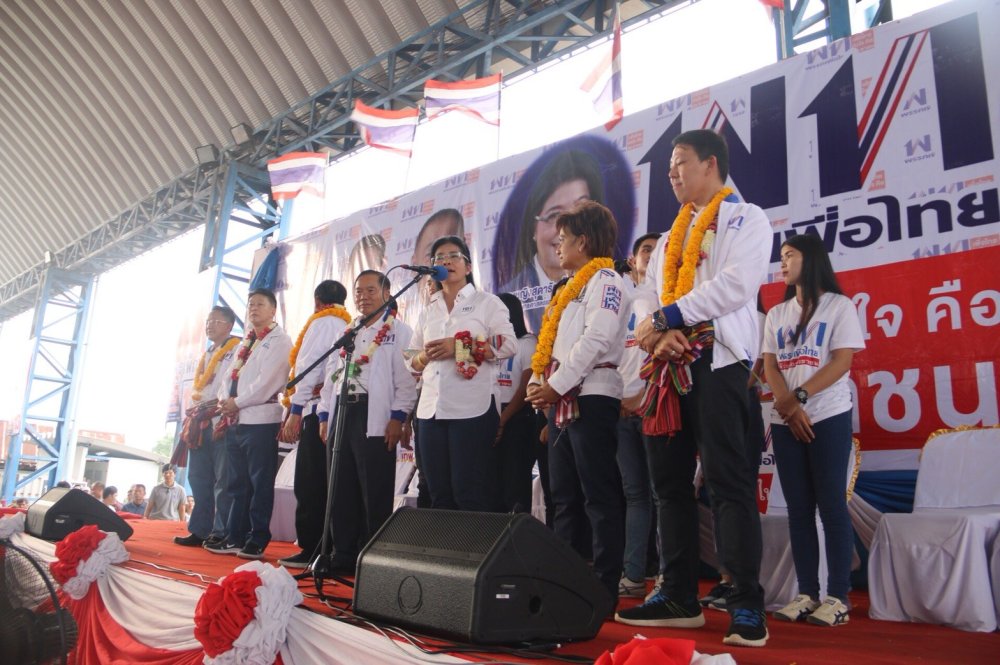 โดยวันนี้มีการปรับแผนกำหนดการออกหาเสียงใหม่ทั้งหมด ในเวลา 16.30 น.ที่ลานกีฬาอเนกประสงค์เทศบาลภูเขียว ต.ผักปัง อ.ภูเขียว จ.ชัยภูมิ โดยมีคุณหญิงสุดารัตน์ เกยุราพันธุ์ หัวหน้าพรรคเพื่อไทย ผู้ได้รับการเสนอชื่อ เป็นนายกรัฐมนตรีของพรรคฯ และคณะ ได้เดินทางลงพื้นที่ จังหวัดชัยภูมิ ตามกำหนดการเดิมเพื่อช่วยลูกพรรคหาเสียงช่วงโค้งสุดท้าย ให้กับนางพรเพ็ญ บุญศิริวัฒนกุล ผู้สมัครเขตเลือกตั้งที่ 5 ท่ามกลางประชาชนเข้าร่วมเวทีปราศรัยใหญ่ในจุดนี้กว่า 5,000 คน ซึ่งจุดสำคัญในเวทีในจุดนี้ยังได้มีนายเจริญ จรรย์โกมล อดีตส.ส.พรรคเพื่อไทย หลายสมัยในจ.ชัยภูมิ ที่ครั้งนี้ย้ายไปสังกัดพรรคไทยรักษาชาติและอยู่ในบัญชีรายชื่อของผู้สมัครของพรรคไทยรักษาชาติอันดับที่ 12 ซึ่งมีการถูกศาลสั่งยุบพรรคไปแล้วเมื่อวันที่ 7 มี.ค.62 ที่ผ่านมา