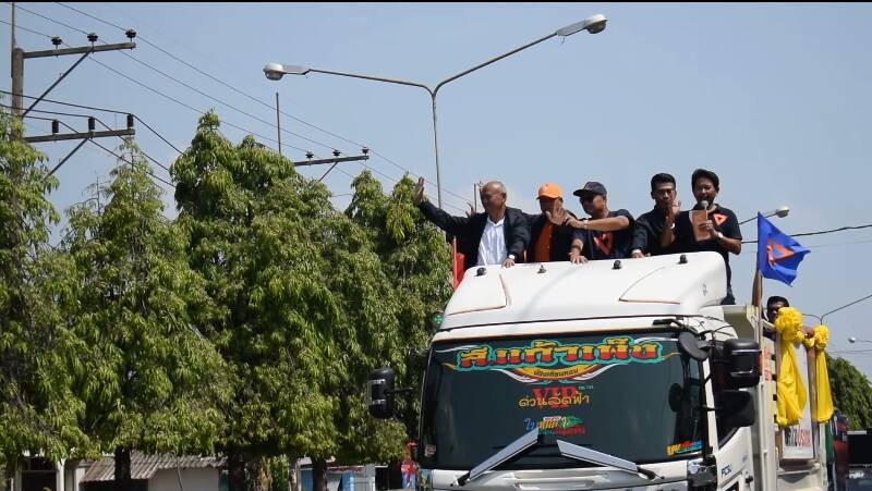 พล.ท.ดร.พงศกร รอดชมภู รองหัวหน้าพรรคอนาคตใหม่ นั่งรถตุ๊กตุ๊ก ๆ หัวกบวนรอบเมือง เอาใจกลุ่มคนขับรถรับจ้างพร้อมอ้อนผู้โดยสารสถานีรถไฟตรังขอคะแนนในช่วงโค้งสุดท้าย เผยพรรคอนาคตใหม่ไม่ได้เป็นนอมินีใคร