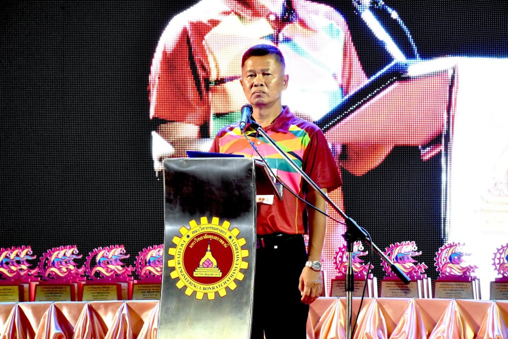 โดยมี นายธนาคม กองเพียร นายอำเภอวารินชำราบ จังหวัดอุบลราชธานี เป็นประธานเปิด ภายใต้การต้อนรับของ ผู้ช่วยศาสตราจารย์ ดร.มงคล ปุษยตานนท์ คณบดีคณะวิศวกรรมศาสตร์ รองศาสตราจารย์ ดร.กุลเชษฐ์ เพียรทอง อดีตคณบดีคณะวิศวกรรมศาสตร์วิศวกรรมศาสตร์ รองศาสตราจารย์ ดร.ชวลิต ถิ่นวงศ์พิทักษ์ รองอธิการบดีฝ่ายวิจัยและพันธกิจสังคม ผู้ช่วยศาสตราจารย์ ดร.อดุลย์ จรรยาเลิศอดุลย์ รองอธิการบดีฝ่ายบริหารกายภาพและสิ่งแวดล้อม พร้อมด้วยคณะผู้บริหาร บุคลากร และนักศึกษาคณะวิศวกรรมศาสตร์ มหาวิทยาลัยอุบลราชธานี และ นายวีระวัฒน์ อักษร นายกสมาคมศิษย์เก่าวิศวกรรมศาสตร์ มหาวิทยาลัยอุบลราชธานี กล่าวรายงานและวัตถุประสงค์การจัดโครงการครั้งนี้ เพื่อนำรายได้เป็นทุนการศึกษา และสนับสนุนกิจกรรมแก่นักศึกษา คณะวิศวกรรมศาสตร์ มหาวิทยาลัยอุบลราชธานี และเพื่อมอบแก่สาธารณกุศล
