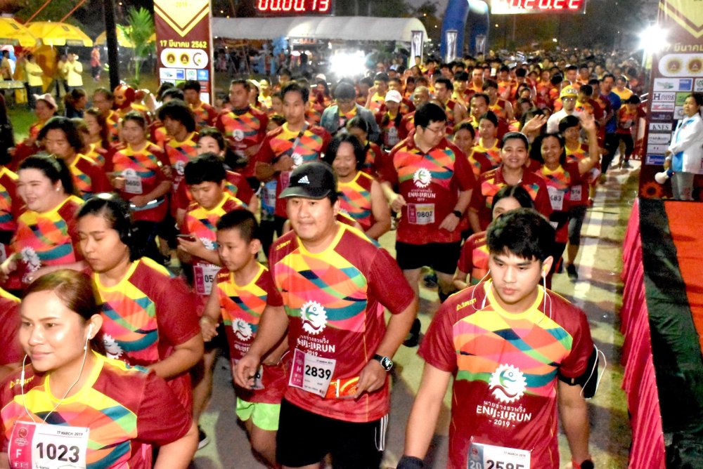 โดยแบ่งออกเป็น 2 ช่วงการปล่อยตัว เริ่มจากมินิมาราธอน ระยะทาง 10 กิโลเมตร และ ฟันรันระยะทาง 5 กิโลเมตรตามลำดับ นายวีระวัฒน์ อักษร นายกสมาคมศิษย์เก่าวิศวกรรมศาสตร์ มหาวิทยาลัยอุบลราชธานี กล่าวว่า สำหรับการจัดโครงการ “นายช่างชวนวิ่ง” EN UBU Run 2019 ครั้งนี้ คณะผู้จัดงานได้กราบนิมนต์พระปลัดสุรพงษ์ จิตญาโณ รองเจ้าอาวาสวัดป่าแสงธรรมสาขาที่ 52 วัดหนองป่าพง และพระครูสังฆภารพิสิฐ เลขานุการเจ้าคณะอำเภอดอดมดแดงและผู้ช่วยเจ้าอาวาสวัดหลวง ให้เกียรติเป็นประธานในพิธีพรมน้ำพระพุทธมนต์ เพื่อความเป็นสิริมงคลให้แก่นักวิ่งในช่วงปล่อยตัวนักวิ่งทั้งสองประเภทด้วย การจัดงานครั้งนี้ประสบความสำเร็จเป็นอย่างยิ่ง ดังจะเห็นได้จากจำนวนนักวิ่งที่เกิดเป้าหมายที่ทางคณะผู้จัดกำหนดไว้ เนื่องจากมีนักวิ่งที่ให้ความสนใจสมัครวิ่งมินิมาราธอน ระยะทาง 10 กิโลเมตร จำนวน 1,281 คน และฟันรันระยะทาง 5 กิโลเมตร จำนวน 1,762 คน รวมทั้งสิ้นจำนวน 3,043 คน หลังหักค่าใช้จ่ายแล้วทางสมาคมศิษย์เก่าวิศวกรรมศาสตร์ มหาวิทยาลัยอุบลราชธานีได้นำรายได้จากการจัดโครงการมอบให้แก่ทางคณะวิศวกรรมศาสตร์ เป็นเงินจำนวน 450,000.- บาท (สี่แสนห้าหมื่นบาทถ้วน) โดยมี ผู้ช่วยศาสตราจารย์ ดร.มงคล ปุษยตานนท์ คณบดีคณะวิศวกรรมศาสตร์ มหาวิทยาลัยอุบลราชธานี เป็นตัวแทนรับมอบเงิน และมอบโล่รางวัลให้แก่นักวิ่งในประเภทต่าง ๆ ตามลำดับ และการจัดงานครั้งนี้เกิดขึ้นได้ด้วยความสามัคคีของทุกภาคส่วนที่ให้การสนับสนุน