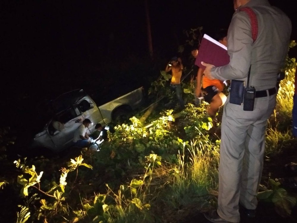 ร.ต.อ.ประโยชน์ ปิ่นตาบุรณ์ พนักงานสอบสวน สภ.หนองบัวระเหว รับแจ้งเกิดอุบัติเหตุรถยนต์กระบะตกถนนบนถนนสาย 225 ชัยภูมิ-นครสวรรค์ บริเวณทางโค้งสร้างนกแก้ว แยกบ้านหนองม่วง ต.โคกสะอาด อ.หนองบัวระเหว จ.ชัยภูมิ จึงเร่งเข้าตรวจสอบที่เกิด พร้อมหน่วยกู้ภัยมูลนิธิสว่างคุณธรรมสถาน จุดหนองบัวระเหว และชุดกู้ชีพเทศบาลโคกสะอาด แพทย์เวร รพ.หนองบัวระเหว เข้าร่วมกันตรวจสอบที่เกิดเหตุ