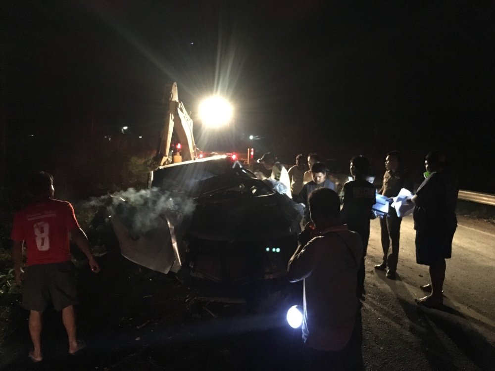 สอบถามชาวบ้านผู้ที่อยู่ใกล้เคียงใกล้ที่เกิดเหตุ ทราบว่าขณะเกิดเหตุมีลมฝนตกลงมา พร้อมมีลมกันโชคแรง คาดว่าจะทำให้ถนนลื่น ทำให้รถยนต์เสียหลักแหกโค้งดังกล่าวที่ชาวบ้านเรียกกันมานานว่าเป็น 100 ศพ ซึ่งเมื่อเกิดมีฝนตกลงมามักเกิดเหตุในลัการะดังกล่าวมาแล้วบ่อยครั้ง จึงทำให้รถยนต์กระบะดังกล่าวพุ่งตกถนนพลิกคว่ำ ชนต้นไม้ชาวบ้านที่อยู่ใกล้ที่เกิดเหตุได้ยินเสียงเหมือนรถยนต์เกิดอุบัติเหตุตกถนน จึงวิ่งออกมาดู และแจ้งเจ้าหน้าที่มาช่วยเหลือเป็นการด่วน นอกจากนั้นจากการตรวจสอบในรถยนต์กระบะคันเกิดเหตุ พบขวดเหล้าชนิดหนึ่ง มีน้ำสีขาวอมชมพู มีกลิ่นเหมือนเหล้าขาว 40 ดีกรี และยังพบขวดยาดองชนิดหนึ่งตกอยู่ภายในตัวรถ จึงได้เก็บไว้เป็นหลักฐานและตรวจสอบ