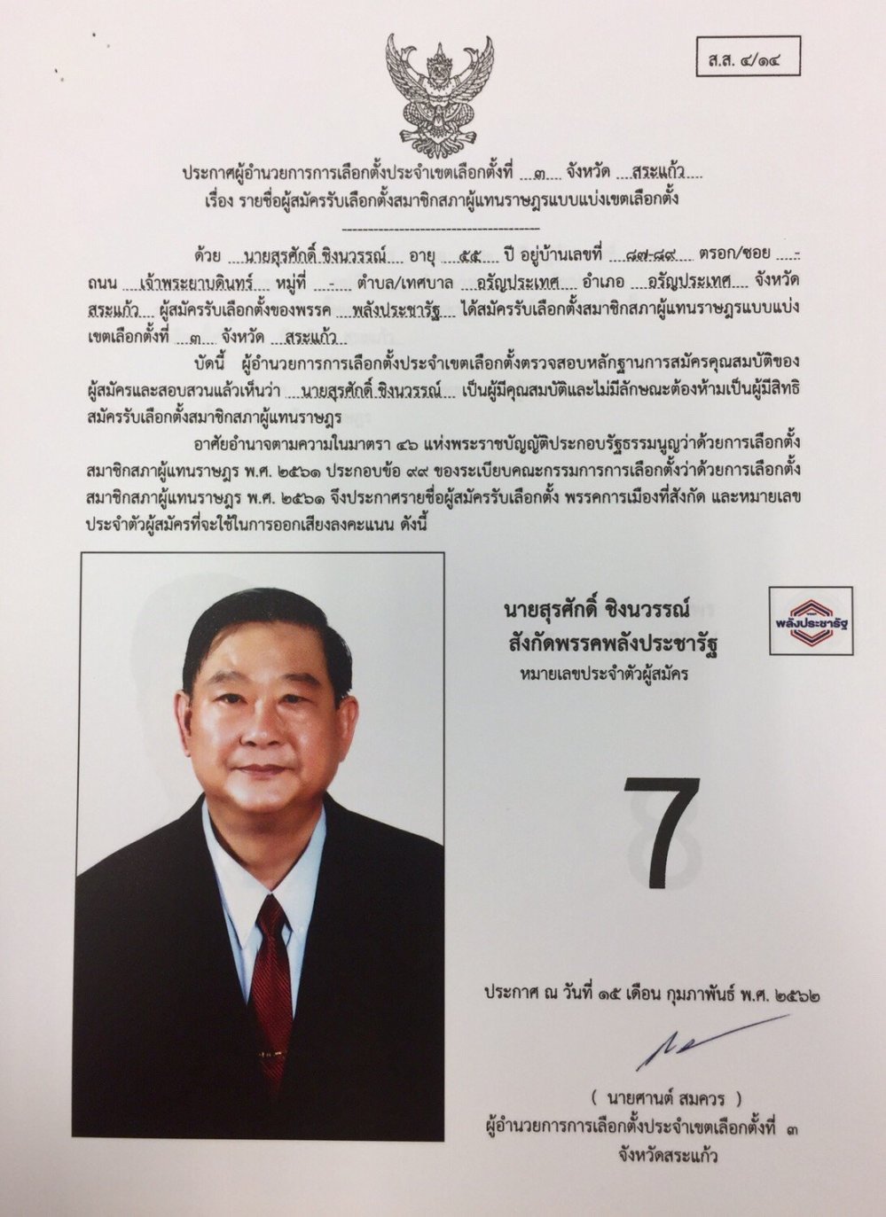 กกต.สระแก้ว ยันการเลือกตั้งสระแก้ว เป็นไปด้วยความเรียบร้อย พลังประชารัฐ ได้ทั้ง3 เขต.ไม่มีการร้องเรียน เรื่องการแจกเงิน ตรวจสอบแล้วยังไม่พบ และที่มีข่าวว่า จนท.เข้า ปิดล้อมบ้านป๋าเหนาะฯนั้น ยังไม่มีเรื่องร้องเรียนเข้ามา