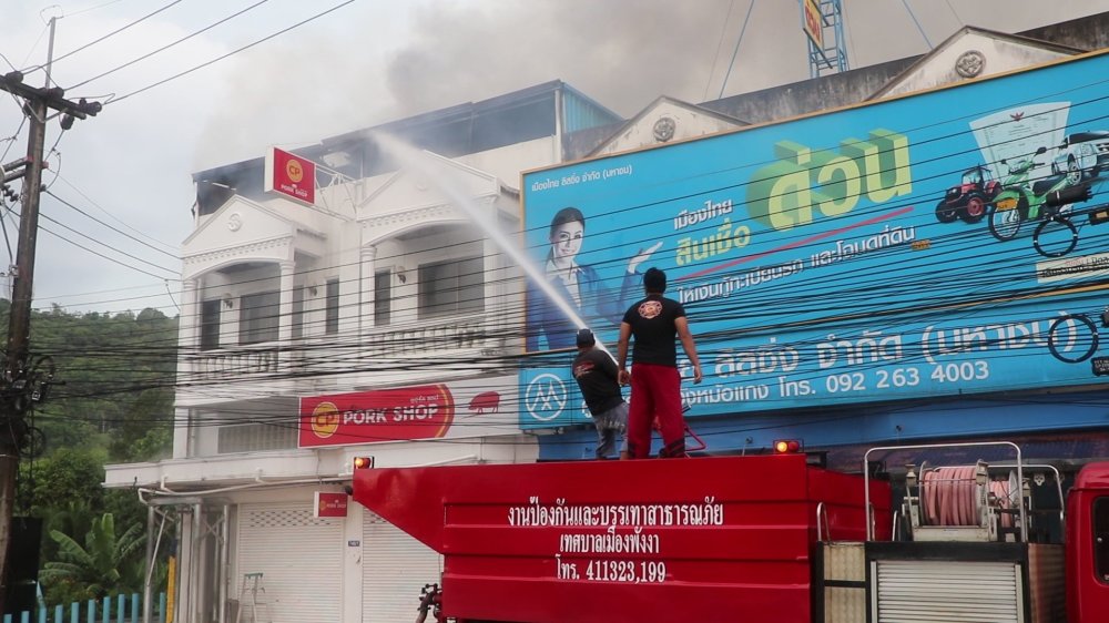 นายศิริพัฒ พัฒกุล ผู้ว่าราชการจังหวัดพังงา พร้อมด้วย นายสายัญ กิจมะโน ปภ.จังหวัดพังงา พ.ต.อ.โชติ ชิดชัย รองผบก.ภ.จว.พังงา นายชูโชติ โกยกุล นายเทศมนตรีเทศบาลเมืองพังงา เข้าดูพร้อมสั่งการเหตุไฟไหม้ ศูนย์จำหน่ายหมูสด ของ บริษัท ซีพี ที่อาคารพาณิชย์ 2 ชั้นครึ่ง เลขที่ 748/1 ถ.เพชรเกษม ชุมชนวังหม้อแกง ต.ท้ายช้าง อ.เมือง จ.พังงา โดยเพลิงเริ่มจากชั้นดาดฟ้าของตัวอาคารดังกล่าว มีควันพวยพุ่งออกมาจากตัวอาคาร จากนั้นมีเพลิงลุกไหม้ และมีเสียงดังระเบิดขึ้นหลายครั้ง ขณะที่เพลิงลุกไหม้ ทางรถดับเพลิงของเทศบาลเมืองพังงา สำนักงานป้องกันบรรเทาสาธารณภัยจังหวัดพังงา สำนักงานไฟฟ้าส่วนภูมิภาคสาขาพังงา เข้าสกัดและระงับเพลิง ซึ่งเจ้าหน้าที่ใช้เวลาประมาณ 30 นาที เพลิงได้สงบลง โดยทางเจ้าหน้าที่สามารถเข้าตัวอาคารพร้อมดับเพลิงภายในตัวอาคารได้สำเร็จ ก่อนที่เพลิงจะลุกไหม้ลามไปยังอาคารพาณิชย์ใกล้เคียง เบื้องต้นทางเจ้าหน้าที่สำรวจความเสียหาย