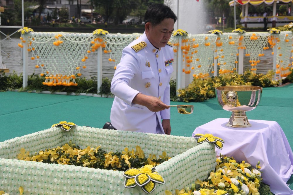 จังหวัดกาฬสินธุ์ ประกอบพิธีพลีกรรมตักน้ำจากแหล่งน้ำศักดิ์สิทธิ์ ใจกลางกุดน้ำกิน โดยผู้ว่าราชการจังหวัดกาฬสินธุ์ นำข้าราชการทุกหมู่เหล่าร่วมประกอบพิธีอย่างพร้อมเพรียง ขณะที่ประชาชนกว่า 2,000 คน แต่งกายด้วยเสื้อเหลืองร่วมพิธีพลีกรรมตักน้ำจากแหล่งน้ำศักดิ์สิทธิ์ครั้งประวัติศาสตร์ของชาติไทย